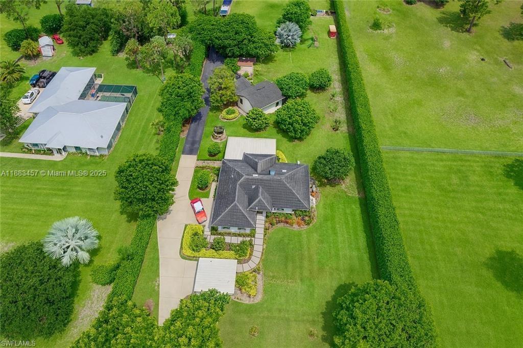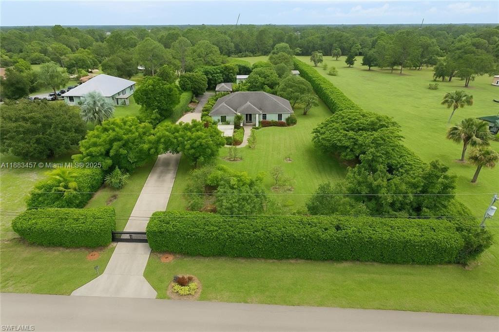 Fully furnished and move-in ready! This unique rental opportunity is located on a private 2.27 acre lot surrounded by lush tropical landscaping and fruit trees including mango, guava, avocado, papaya, lemons, and more. The property is fully fenced with a natural hedge of calusias, features impact windows, and a private automated gate—ensuring privacy, security, and peace of mind. This property is a perfect fit for remote workers, traveling nurses, Ave Maria University students, or seasonal vacationers looking for a tranquil lifestyle just minutes from city conveniences. The large outdoor spaces make it ideal for families, gatherings, and extended stays.1Main House Features: 3 bedrooms, 2 bathrooms, plus 1 sofa bed (sleeps up to 8)