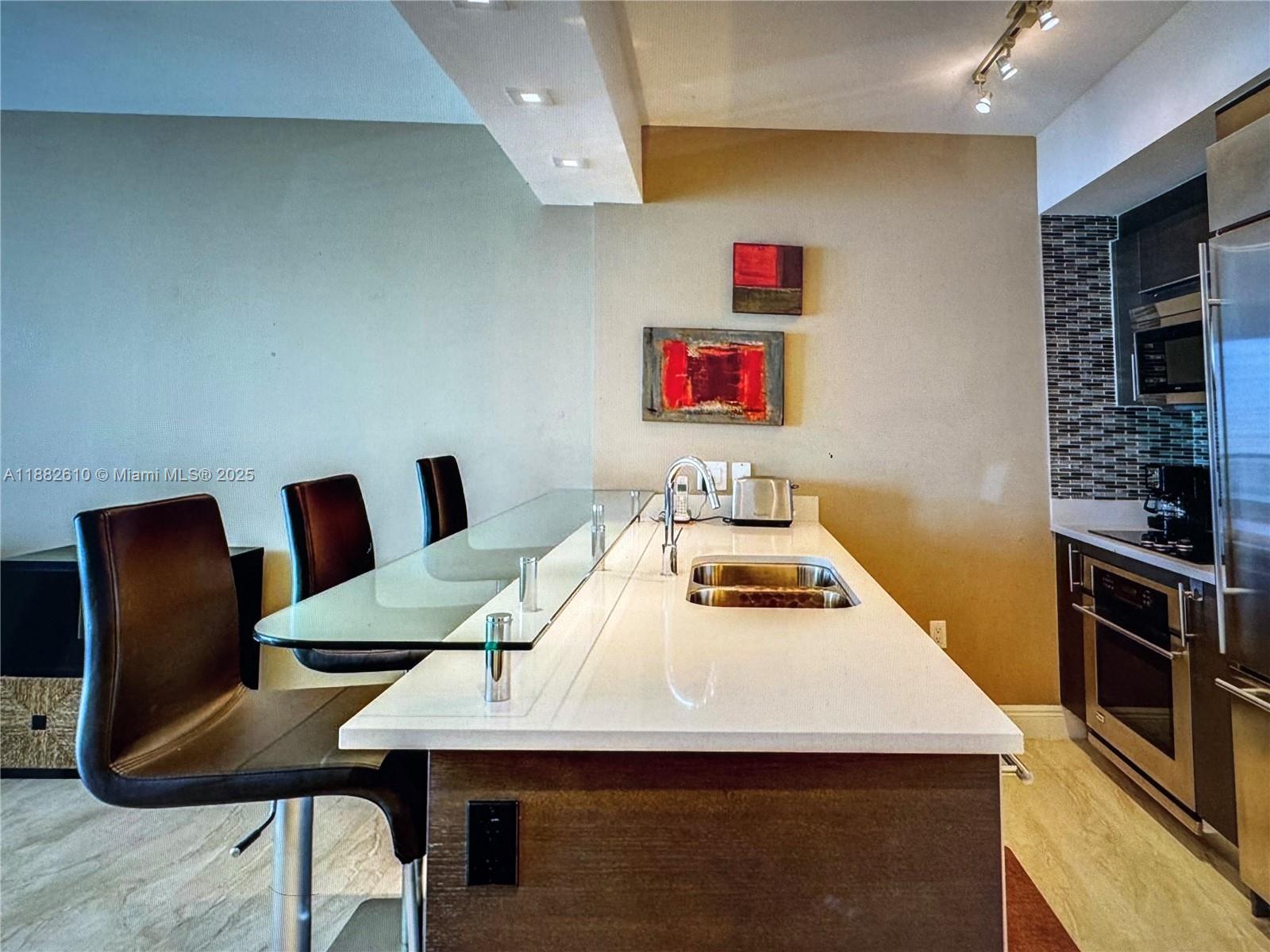 Amazing turnkey 1 bedroom + Den with 1 Bathroom with incredible views from the Bay and City. European Style Kitchen with top of line appliances. Master Suite with great view, electric shade, huge bathroom with separate Tub and Glass Shower. One Assigned Parking Space. Fine and great Taste in all details at this unit in the desirable 500 Brickell. Building has great amenities like 3 Pools (one of them located at 42nd floor with panoramic view, Theater, Sports Bar Room, Spa and other features. Located at the heart of Brickell, near the great restaurants, Brickell City Centre Mall and other great things. You MUST see!!