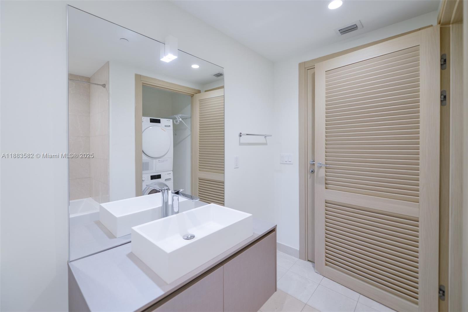 Spectacular one bedroom, two full bathroom condo with a den, in the Brickell Flatiron. The amenities at Brickell Flatiron are some of the bests in the city. Rooftop pool located on the 64th floor offering 360-degree, unobstructed water and city views, a rooftop spa and fitness center with private steam, sauna and locker facilities, an 18th floor lap pool, a children's playroom and pool, a full-time doorman and concierge, a private movie theater, wine room and cellar, and social lounge. Mins away from Brickell City Center.