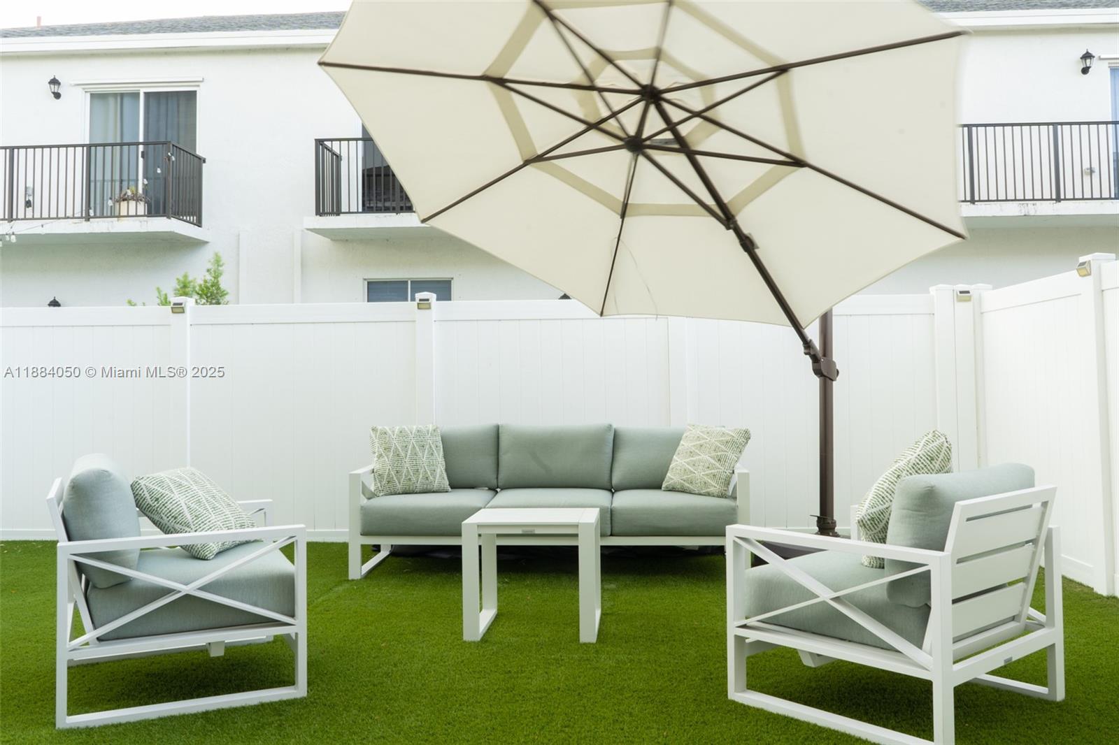 Beautiful 3-bedroom, 2.5-bath home located in a quiet community with low HOA fees. Features a covered garage for 1 car plus space for 2 more. Fully fenced backyard with low-maintenance artificial grass, perfect for relaxing or entertaining. Modern kitchen with stainless steel appliances, washer, and dryer included. The primary bedroom offers a lovely private balcony to unwind. Conveniently located near supermarkets, shops, and everything you need for a comfortable lifestyle. Move-in ready!