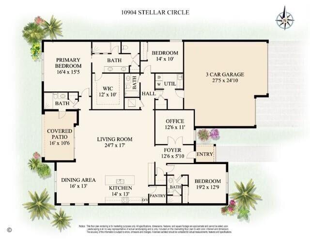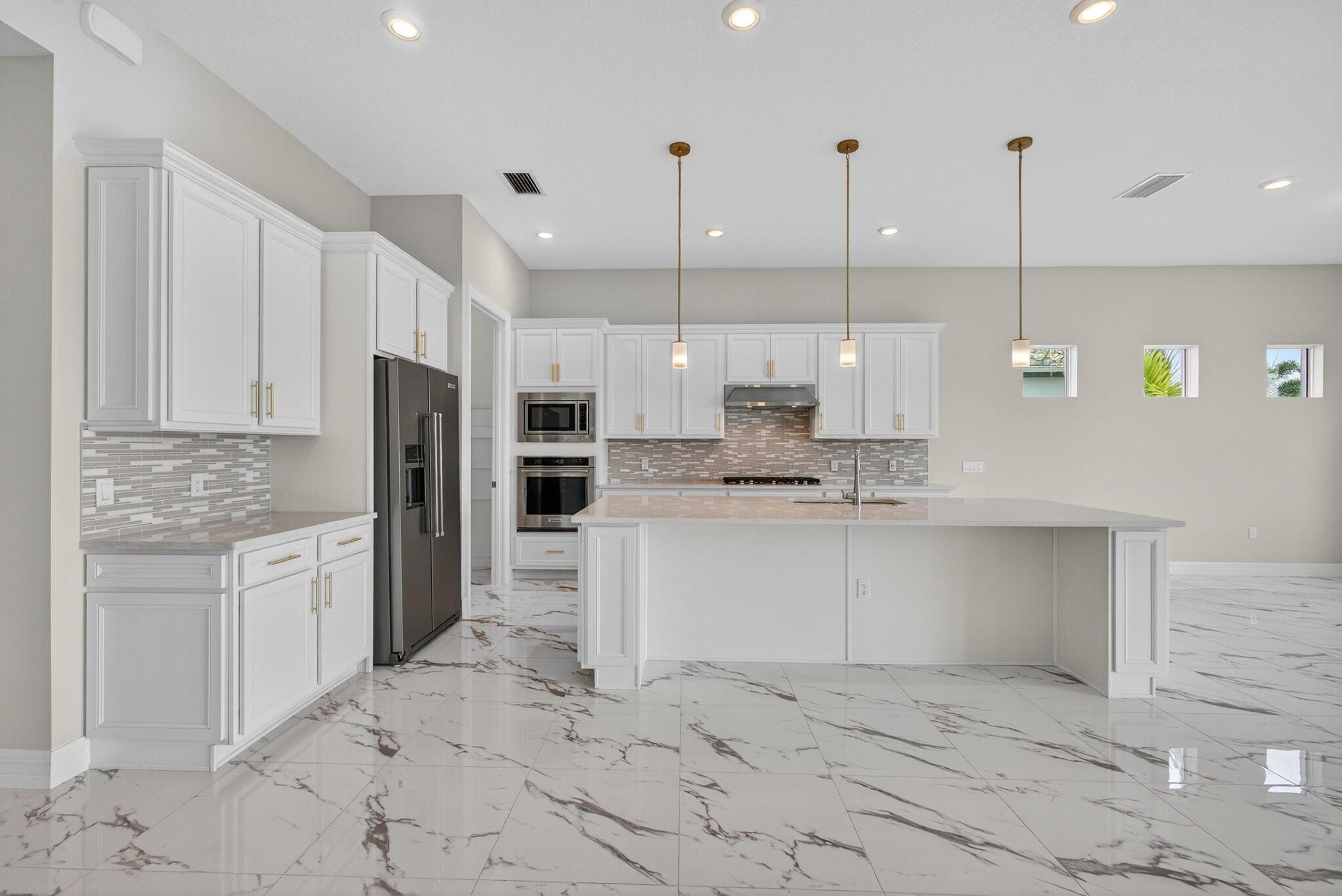 Stunning 3BR/4BA home on an extra-wide 90' premium lot with spectacular water, fountain, park & bridge views! This beautifully upgraded home features a 3-car garage with 4' extension, corner glass rear sliders, and a Coastal elevation. Interior upgrades include a flex/bonus room with double glass French doors, cabana bath, walk-in double shower in the primary suite, and upgraded flooring (porcelain, wood, carpet). Designer kitchen and baths feature upgraded cabinets, countertops, tile, backsplash, hardware & appliances. Additional highlights: upgraded lighting, tankless water heater. Rare opportunity for luxury, space & views in one exceptional property. Avenir offers upscale amenities, incl. pools/spa/waterpark, kids club, fitness center, tennis, pickleball, clubhouse, walking trails.