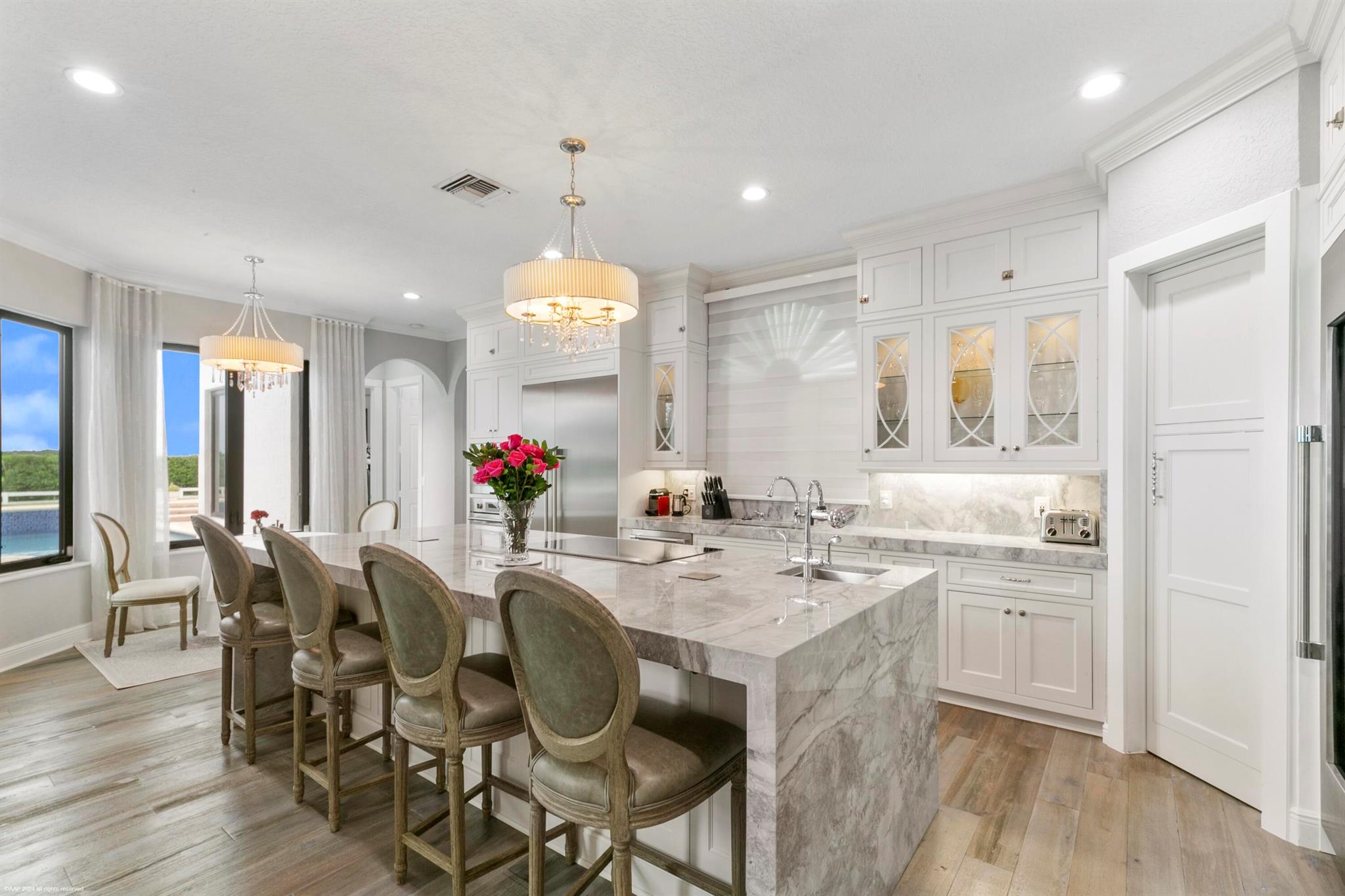 With no expenses spared, this completely renovated Southfield's of Palm Beach Polo Club Estate is situated on 5 private polo fields. One of best locations in town! Appraised at $5.73M (June 2025), this turn-key 5 bed, 4.5 bath, 4,619 sq. ft. home is just a short golf cart ride from all equestrian show grounds. Enjoy this 5 Star resort style estate with gated entry, heated 88ft long salt-water pool, pickleball court, and full outdoor kitchen. Stunning interiors with soaring ceilings, picture windows, spiral staircase, and chef's kitchen with 120'' marble waterfall island. Upgrades include new hurricane-proof windows/doors, 5 new remodeled baths, new ACs, Sonos audio, security cameras, water-leak detection, and whole-house generator.