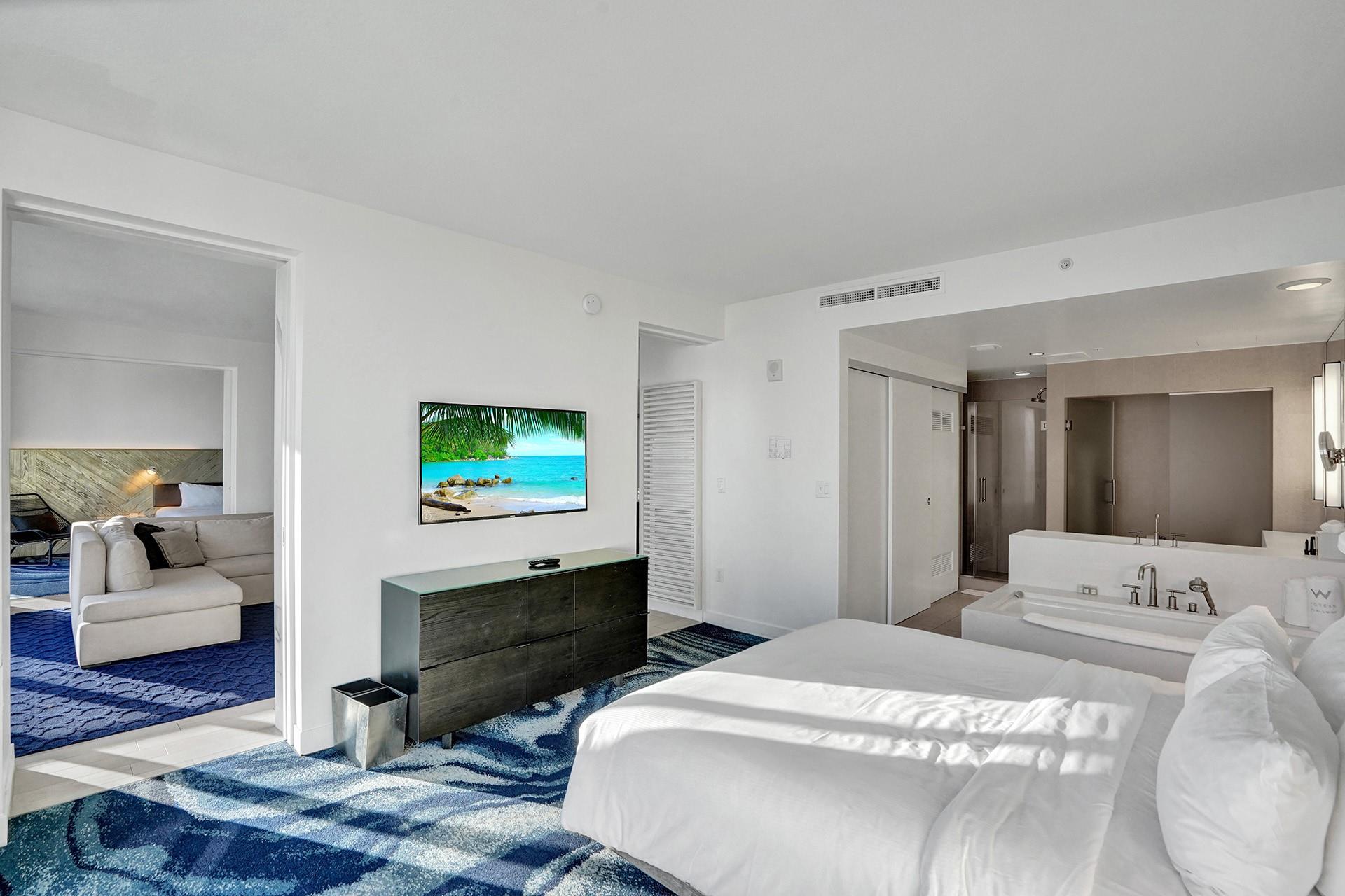 Weekend, Weekly, Monthly & Seasonal Availability! Turnkey W Hotel & Residences 2Bedroom/2Bathroom Oceanfront Private Unit Professionally Managed by Walker Vacation Rentals. W Hotel & Residences Beach Resort amenity access with perks! From your floor to ceiling windows & doors enjoy ocean & city views. Spacious living areas include 2 primary suites w/ king size beds as well as a queen sleeper sofa in the living room. Split bedroom provides privacy while you enjoy the unit’s sleek & modern design, large balconies, in-room laundry, living/dining area w/ open kitchen & island. Rates vary depending upon season & duration of stay and do not include mandatory fees charged by management company and hotel. Contact us for personalized pricing!