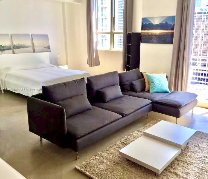 One bedroom loft at The Loft Downtown Condominium!! Unit features include polished concrete flooring, stone countertops, stainless steel appliances, microwave, washer & dryer & central A/C. Building is next to the Metrorail Mover and across from MDCC.