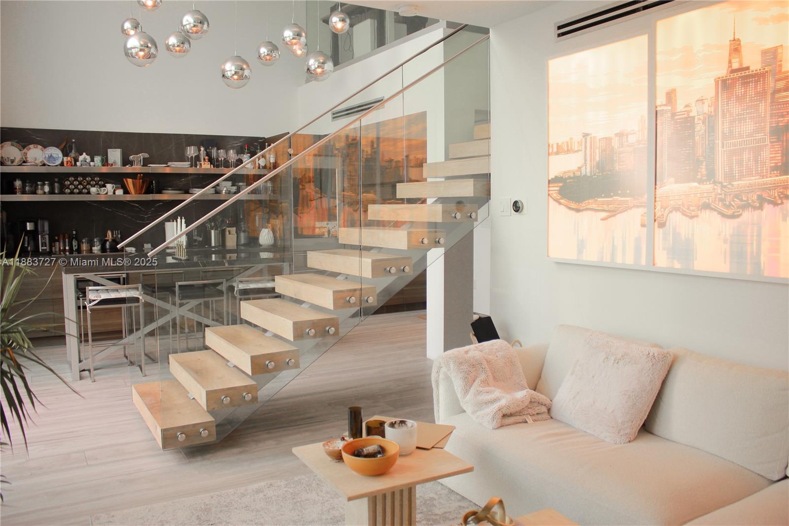 Spectacular partly furnished custom-designed 2BR/2BA two-story residence with Miami River views. Flooded with natural light, this fully remodeled home features an Italian marble kitchen with Miele appliances, elegant wood/glass staircase, and modern bathrooms. Smart home automation includes LUTRON motorized shades, Nest thermostat, built-in speakers, and LED lighting. Two elongated balconies with river and Brickell views. Private elevator with limited access per floor + assigned parking on the same level. Building offers resort-style amenities including pool, gym, spa, party room and movie room. Prime location - just a 5-minute walk to Brickell City Centre with shopping, dining and entertainment. Available for annual lease (6-month term considered).