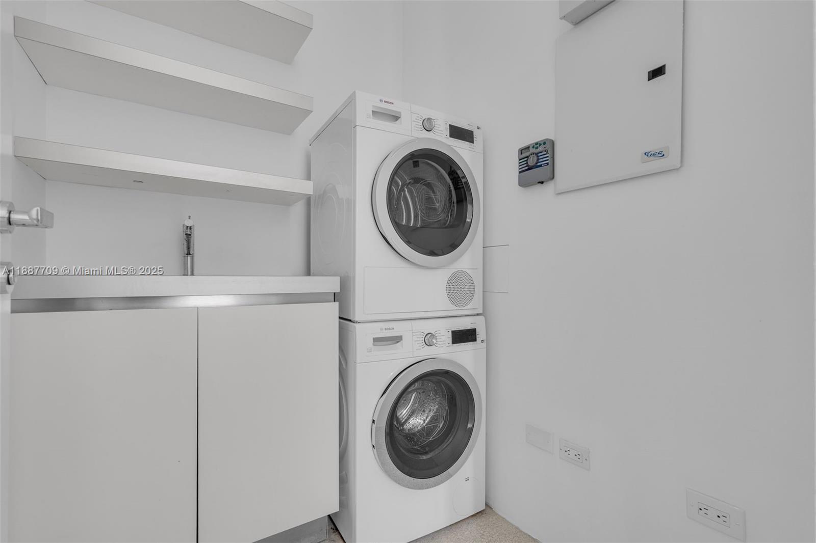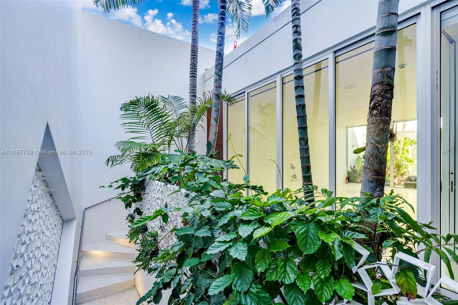 Step into an exceptional South Beach oasis that blends architectural elegance with ultimate privacy and style. This exclusive residence combines luxury and location, just steps from Lincoln Road, the beach, and within walking distance to the vibrant Sunset Harbour District. Surrounded by a lush courtyard and tropical gardens, the home evokes a serene retreat in the heart of the city. Masterfully designed by Herzog & de Meuron, every element creates a living experience that is both rare and sophisticated. Interiors feature 10-foot ceilings, handcrafted terrazzo floors, and floor-to-ceiling glass walls that fill the space with natural light. The custom gourmet kitchen includes top-tier appliances. Additional features include walk-in closets, a private entrance, and a laundry room.