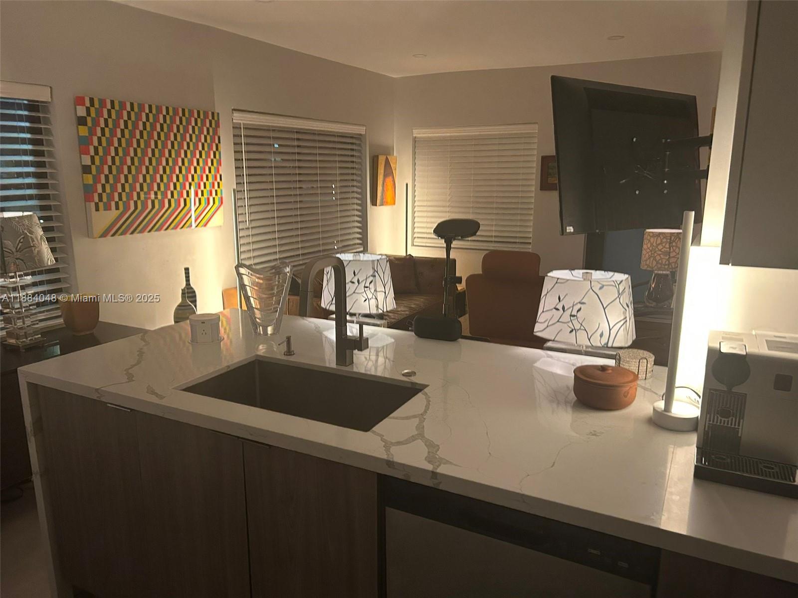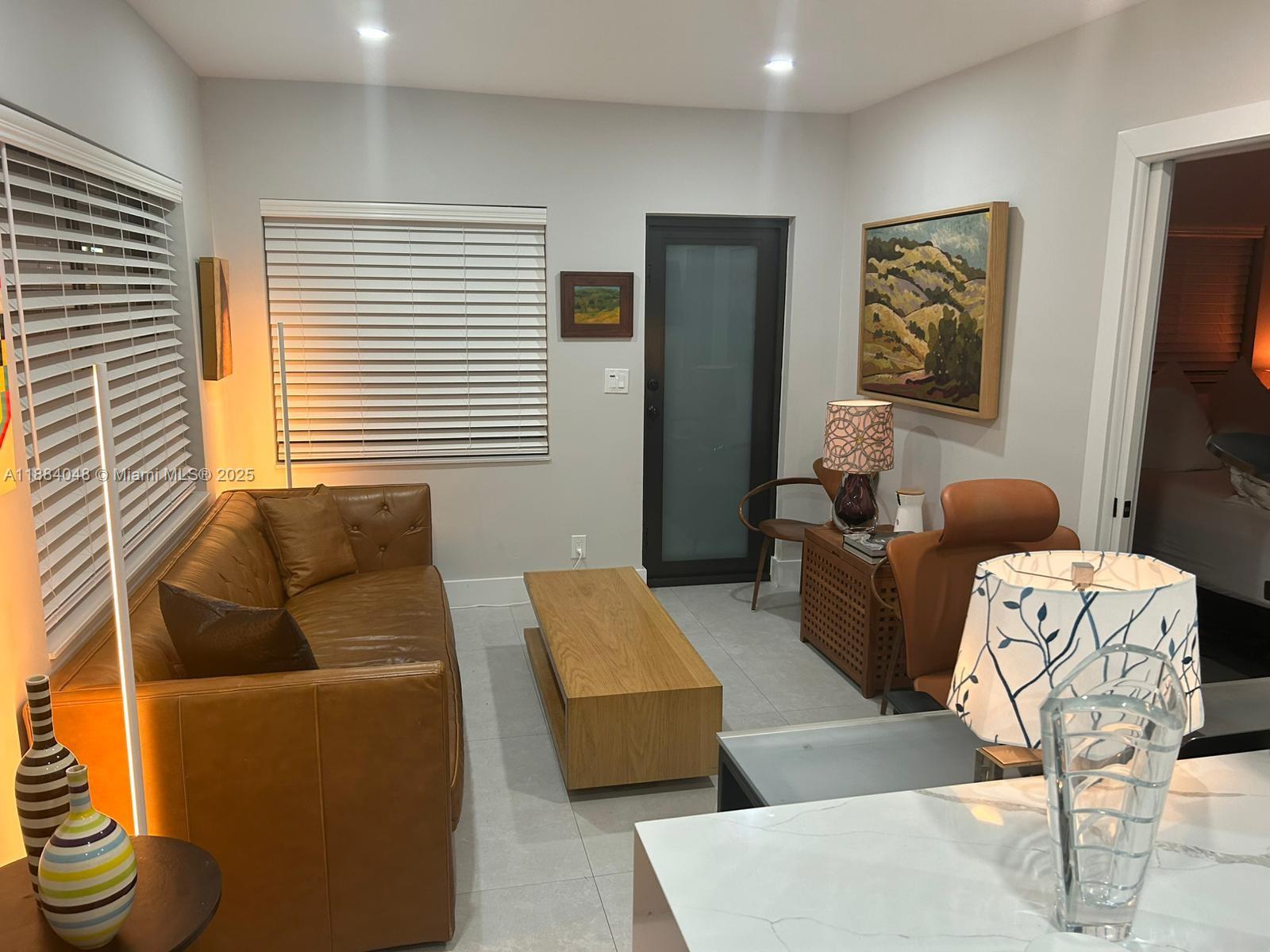 Fully renovated 1 bed 1 bath corner unit with plenty of lighting from 4 large windows, plus a private rear gated patio to enjoy. This unit has updated kitchen with quartz countertops with waterfall/electrical pop up outlets, pantry, garbage disposal, stainless steel appliances, new bathroom, impact windows/doors, new roof, washer/dryer in unit and central AC. One dedicated parking spot per unit. This unit will be available at end of October 2025 and is tenant occupied with easy showing.