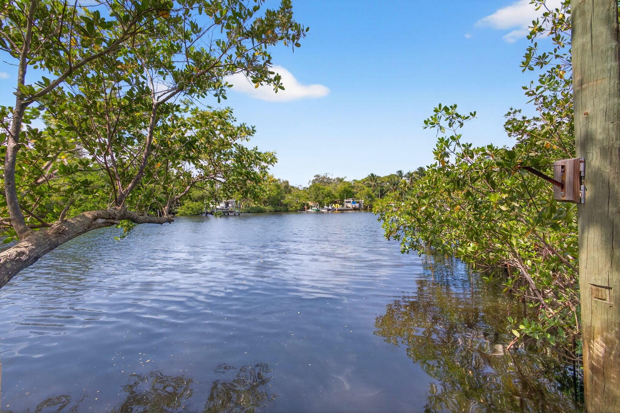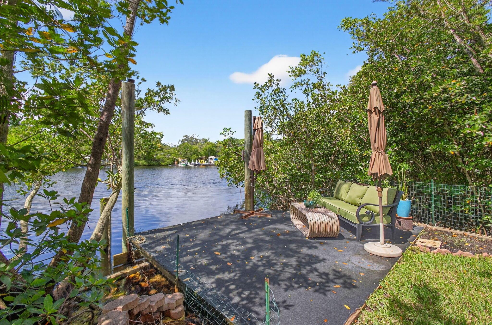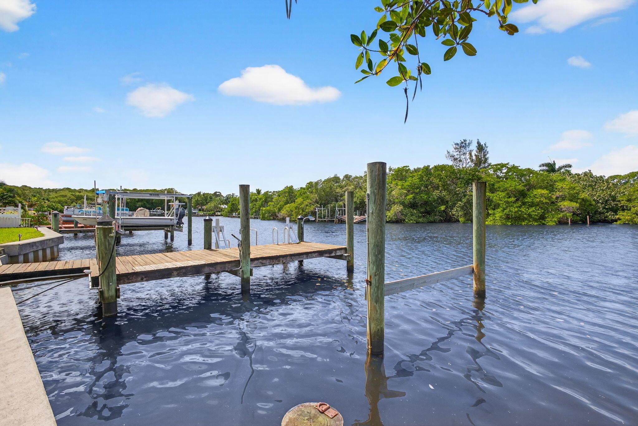 Discover a rare retreat on Jones Creek with direct water access and complete privacy. Perfectly serene and spacious yard inviting relaxation, capturing the essence of effortless Florida Living. Step outside to your own floating dock, gather around the fire pit under the stars, and launch your kayaks or paddleboards straight from your backyard, where the creek flows to the Loxahatchee River and Jupiter Inlet. Inside, an open-concept kitchen shines with custom cabinetry, granite countertops, and stainless-steel appliances, creating a stylish and functional heart of the home. The primary suite features a spacious walk-through closet and a spa-inspired bath with designer tile and quartz finishes. The guest bath includes a jacuzzi tub, perfect for unwinding after a day on the water.