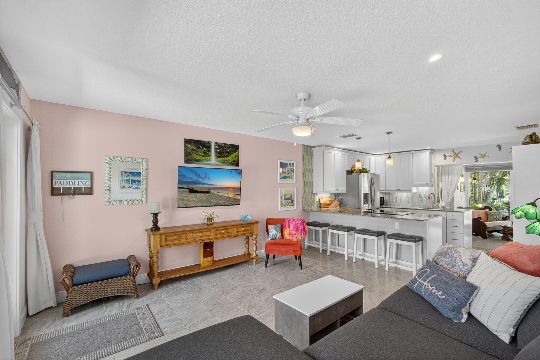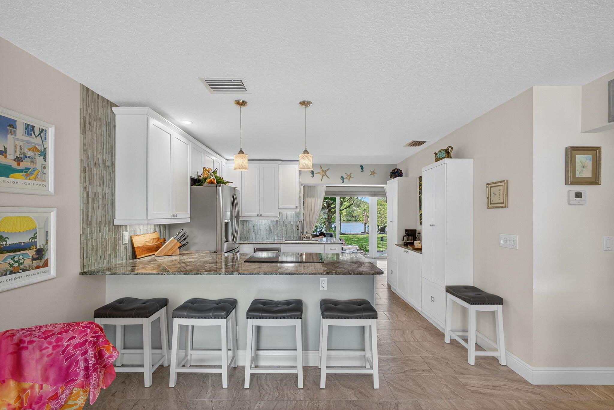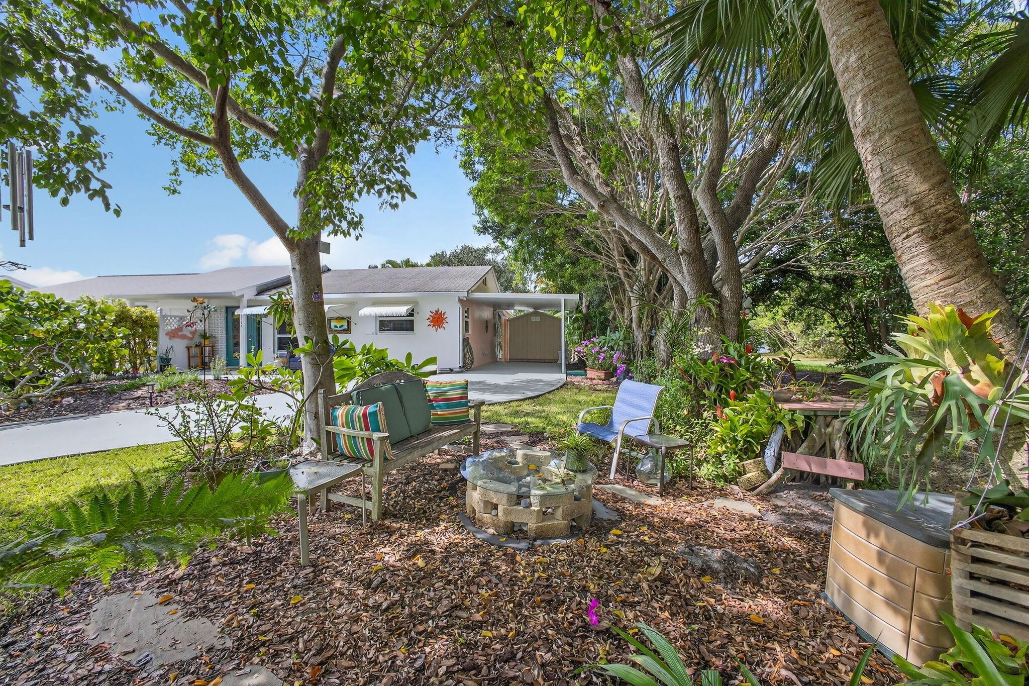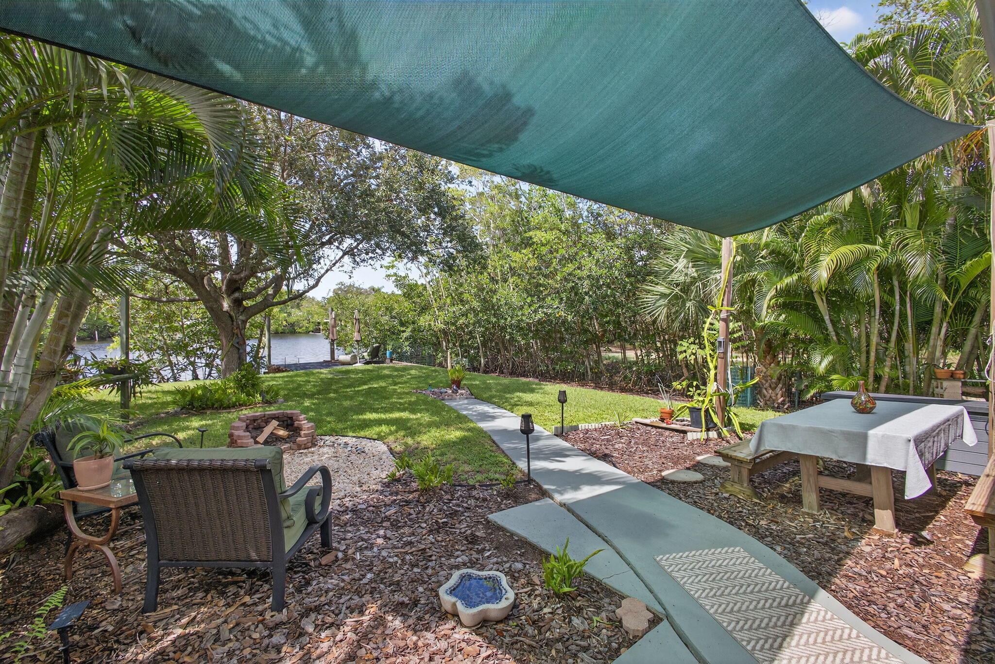 Discover a rare retreat on Jones Creek with direct water access and complete privacy. Perfectly serene and spacious yard inviting relaxation, capturing the essence of effortless Florida Living. Step outside to your own floating dock, gather around the fire pit under the stars, and launch your kayaks or paddleboards straight from your backyard, where the creek flows to the Loxahatchee River and Jupiter Inlet. Inside, an open-concept kitchen shines with custom cabinetry, granite countertops, and stainless-steel appliances, creating a stylish and functional heart of the home. The primary suite features a spacious walk-through closet and a spa-inspired bath with designer tile and quartz finishes. The guest bath includes a jacuzzi tub, perfect for unwinding after a day on the water.
