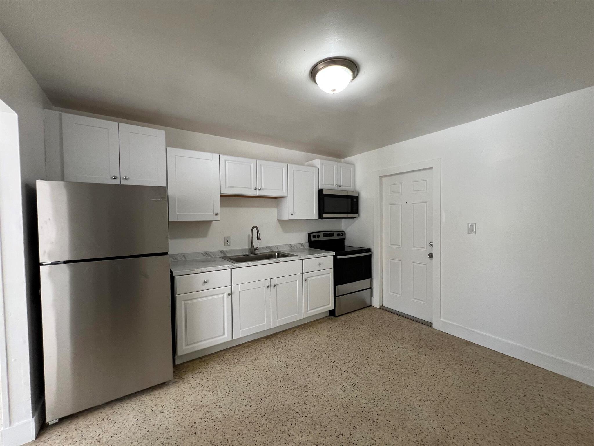 Spacious 2 bedroom 1 bath duplex with terrazzo throughout and covered back patio. Updated Kitchen and Bathroom. Stainless appliances. $75 per adult credit and background application fee. Proof of verifiable Income 3x the rent. First , last and security. Tenant responsible for lawn.