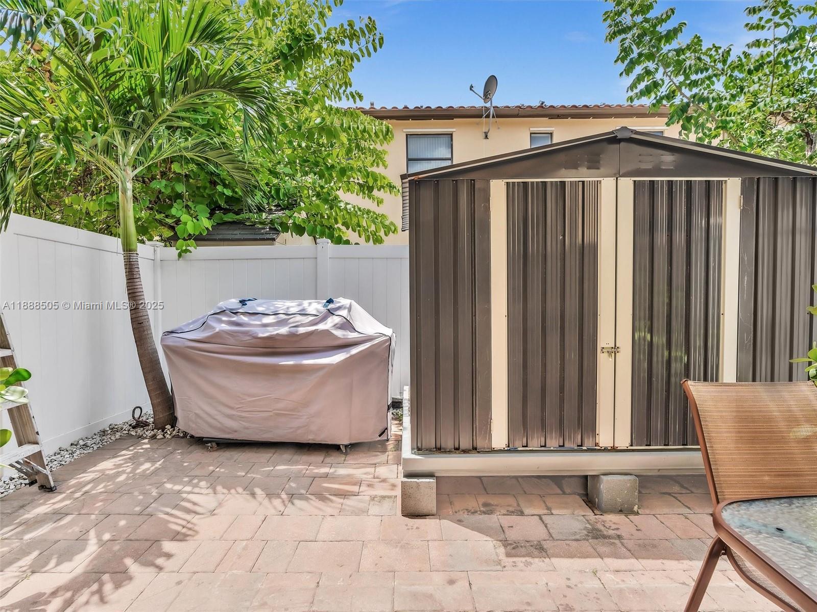 This spacious 2-story villa features 3 bedrooms and 2.5 bathrooms with a modern open layout. Tile flooring on the first floor and laminate wood upstairs add a stylish touch throughout. The open kitchen with stainless steel appliances flows seamlessly to a private paved, fenced patio—perfect for family gatherings. Located in the gated community of Aragon, residents enjoy resort-style amenities including a clubhouse, pool, fitness center, playground, 24-hour security, and more. The property offers two assigned parking spaces in front, plus ample guest parking. Conveniently situated near major highways, supermarkets, schools, and restaurants.
