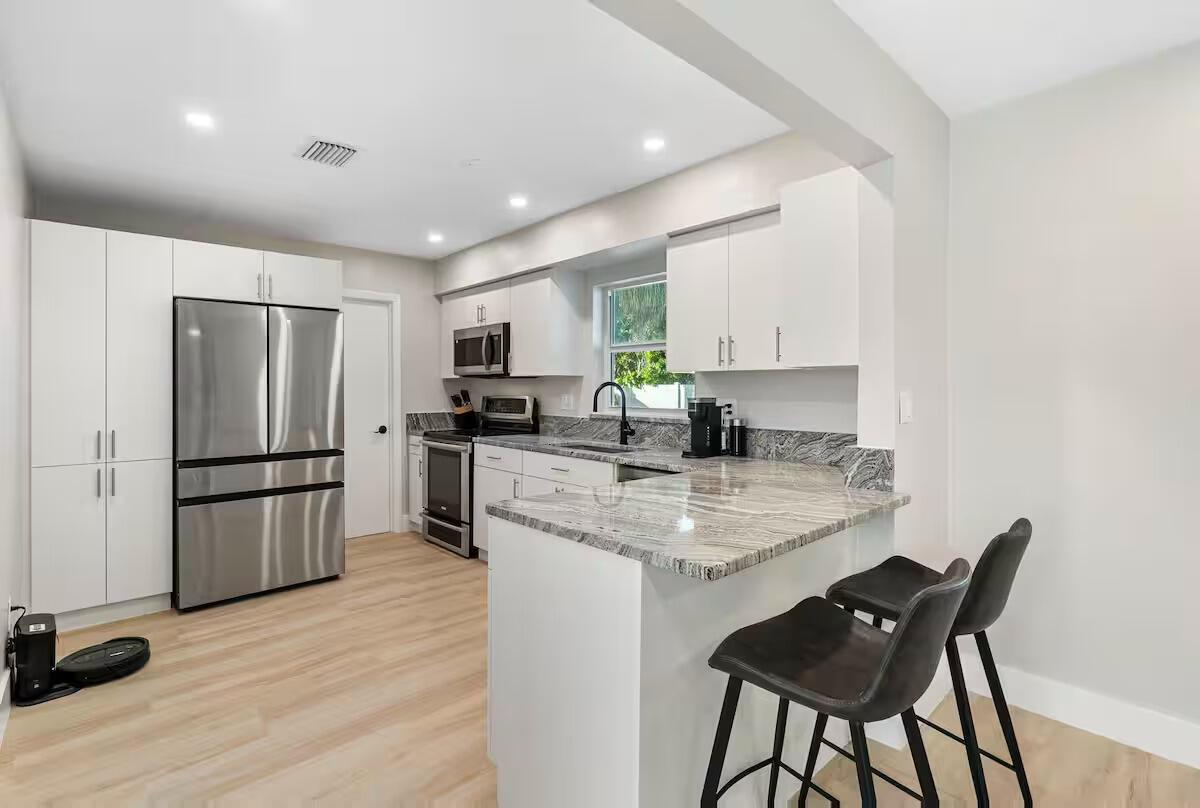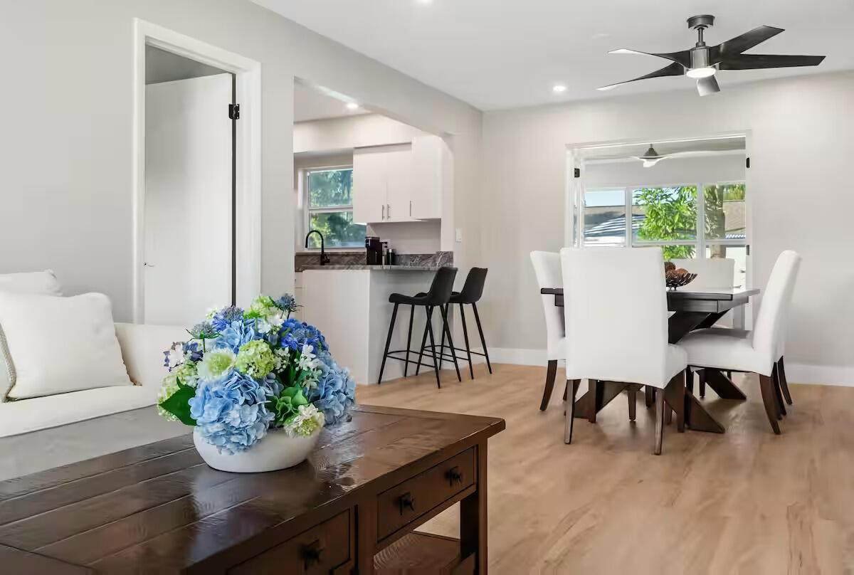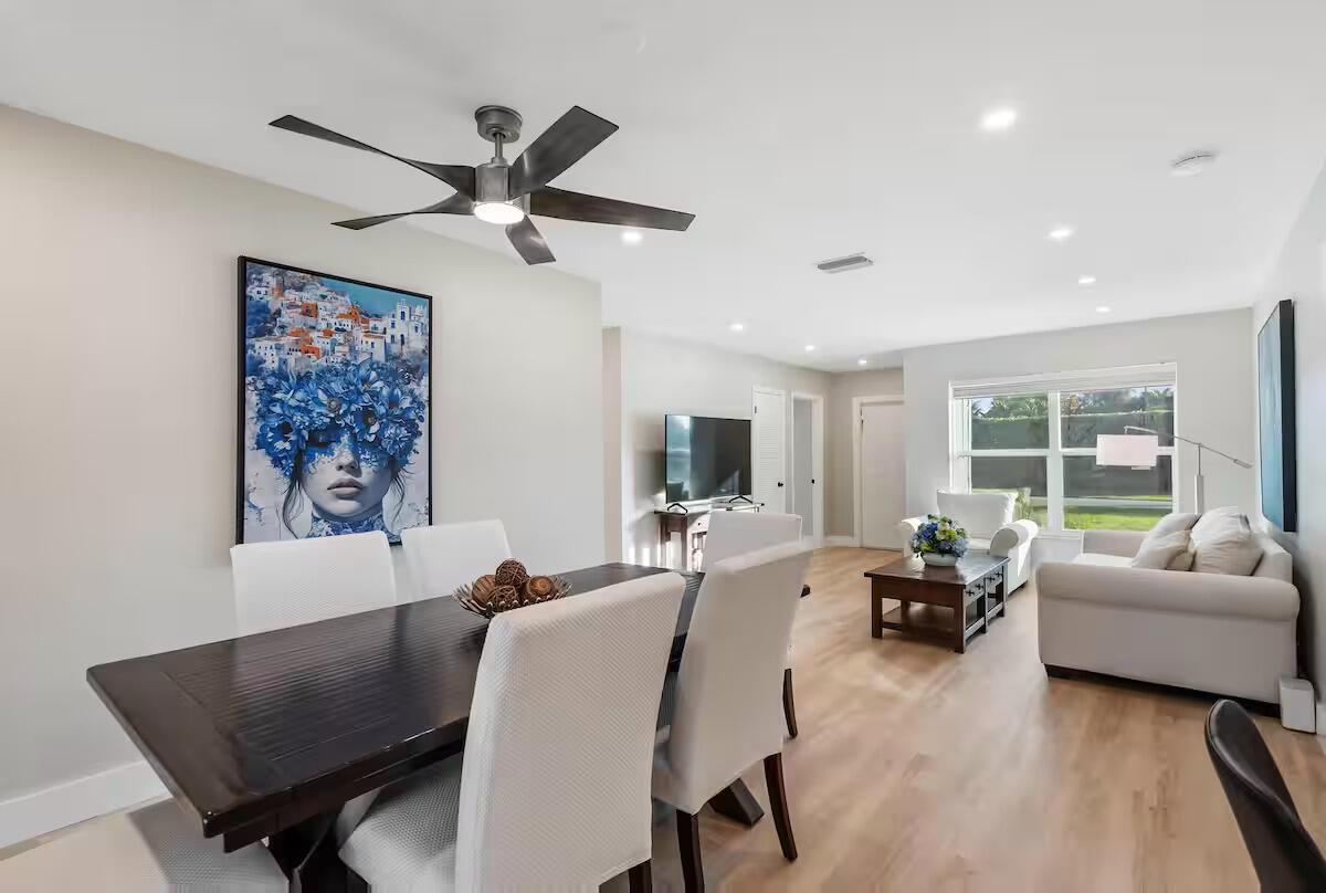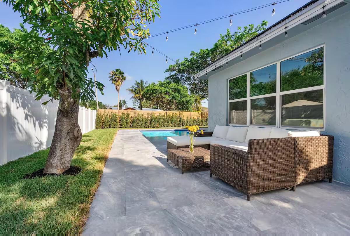 Stunning 4-Bed, 2-Bath Saltwater Pool Home w/ fenced yard in East Delray Beach - Available furnished/unfurnished for Short/Long-Term Rental. Welcome to this beautifully renovated single-family home offering comfort, style, & a true South Florida lifestyle. This spacious 4/2 property is in perfect condition & designed w/ both relaxation & entertainment in mind. Internet up to 300 mps, pool, lawn, & pest control are included for added convenience. Interior Features: Fully renovated w/ newer flooring, countertops, kitchen cabinetry, & appliances.Master suite with king-sized bed, walk-in closet, and private bath. Washer/Dryer inside. Additional bedrooms: one queen, one full, & one full with trundle. Bright open living and dining areas, plus a sunny Florida room with a private work space.
