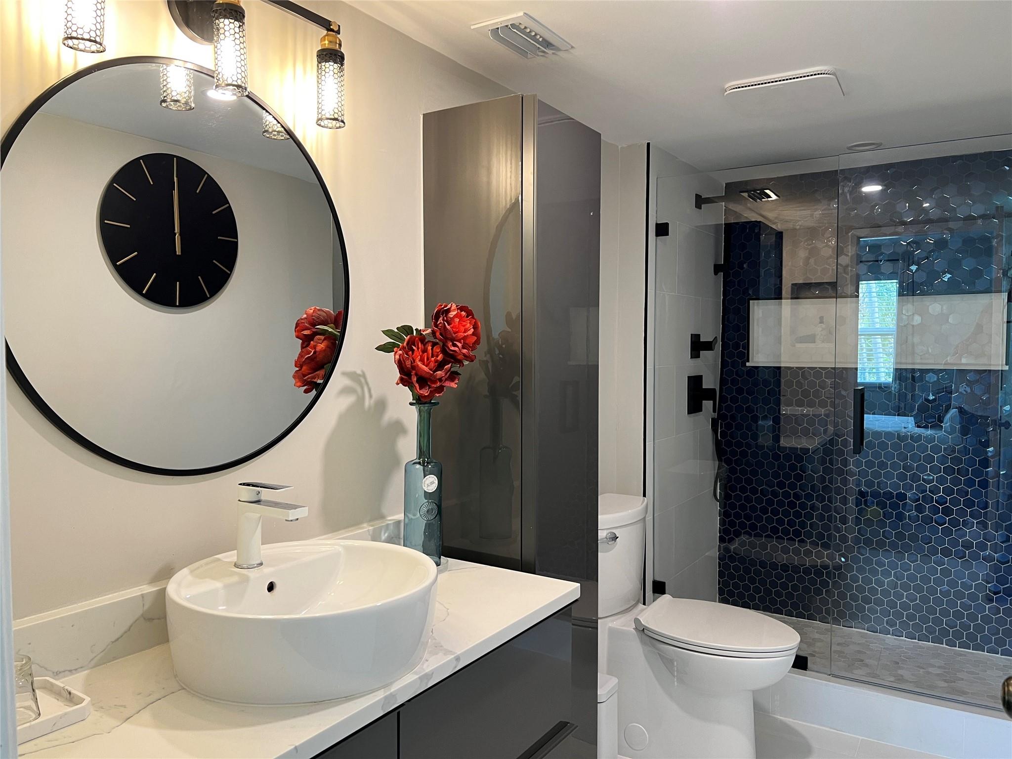 Beautifully renovated 2 bedroom, 2 bathroom condo for rent in Cypress Bend V. Primary bedroom has a large walk-in closet with Alpha System finishes, and a tastefully remodeled bathroom with rain head shower and frameless door. Second room has spacious closet and the second bathroom has a combination tub/shower. Enjoy cooking in this open kitchen with beautiful granite counter tops, newer stainless steel appliances, coffee nook, and pantry with pull out drawers. Tile floors in living areas and high end vinyl in the bedrooms. Enjoy the convenience of a FULL SIZE washer & dryer in the unit. Quiet corner condo with peaceful views of the pool and lake. Complex offers 2 pools, hot tub, gym, tennis courts, clubhouse, car wash area and more. 1 small dog ok with a non-refundable $250 pet deposit.
