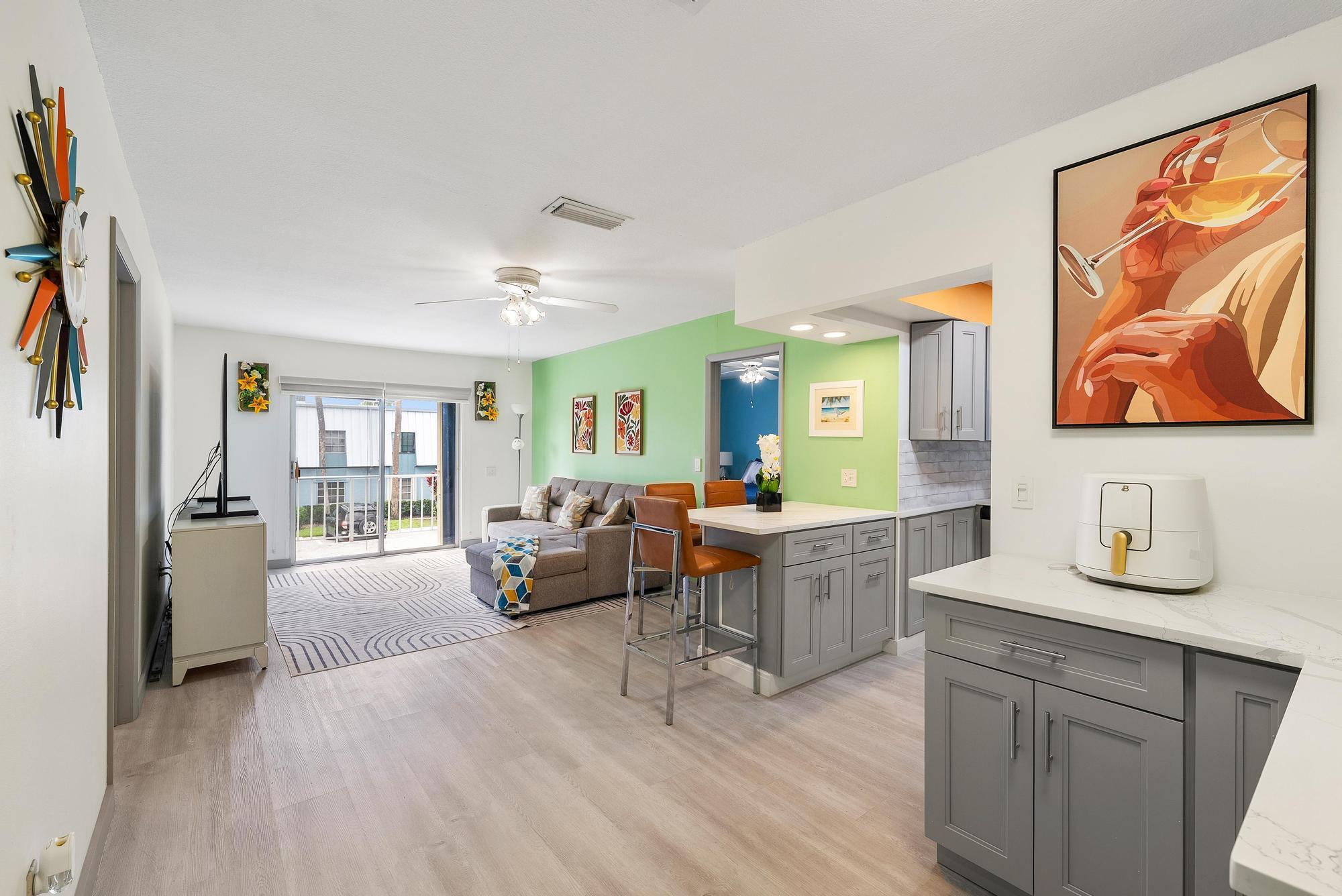 Beautifully Renovated Annual 2BR/2BA Condo in Downtown StuartExperience modern coastal living just minutes from the vibrant heart of Downtown Stuart! This beautifully renovated second-floor condo combines comfort, convenience, and style. Inside, you'll find an updated kitchen and bathrooms, a spacious primary suite with a walk-in closet, a built-in bar area, and a private balcony perfect for morning coffee or evening relaxation.Enjoy the convenience of an in-unit washer and dryer, an assigned parking space, and an exterior storage locker. Located in the highly desirable Poppleton Creek Association, residents have access to two clubhouses, sparkling community pools, and included utilities--water and internet--for worry-free living.Ideally situated near I-95, Costco, shopping, dining,