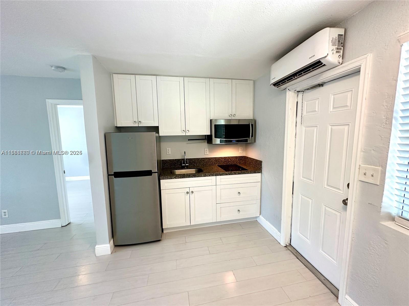 Updated 1-bedroom 1-bathroom apartment in a fenced fourplex in Fort Lauderdale. The renovated unit features laminate and tile floors, kitchen with stainless steel appliances (refrigerator, microwave/convection, electric cooktop) and granite countertops, impact windows and door, split unit AC, and its own semi-private front yard. Spacious and fenced yard with a covered patio shared with the other units. On-site free laundry facility. Rent includes water, pest control, and parking. 1 cat allowed (no dogs except emotional support or service animals with updated documents). Close to Wilton Manors, Flagler Village, Downtown, and Fort Lauderdale Beach. Easy access to I-95 on Sunrise Blvd. No HOA - Rapid approval.