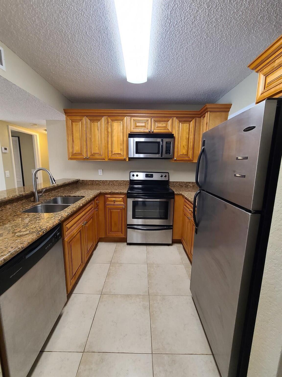Beautiful 3-bedroom, 2-bathroom first floor unit with stunning lake views! This clean and well-maintained home features neutral colors, a kitchen with stainless steel appliances, granite countertops, and wood cabinetry. Washer and dryer in unit. Enjoy tile flooring throughout the main living areas and brand new laminate wood in the bedrooms. The unit includes a private porch and move-in ready! Conveniently located just minutes from the Florida Turnpike and close to major roads including Okeechobee Blvd