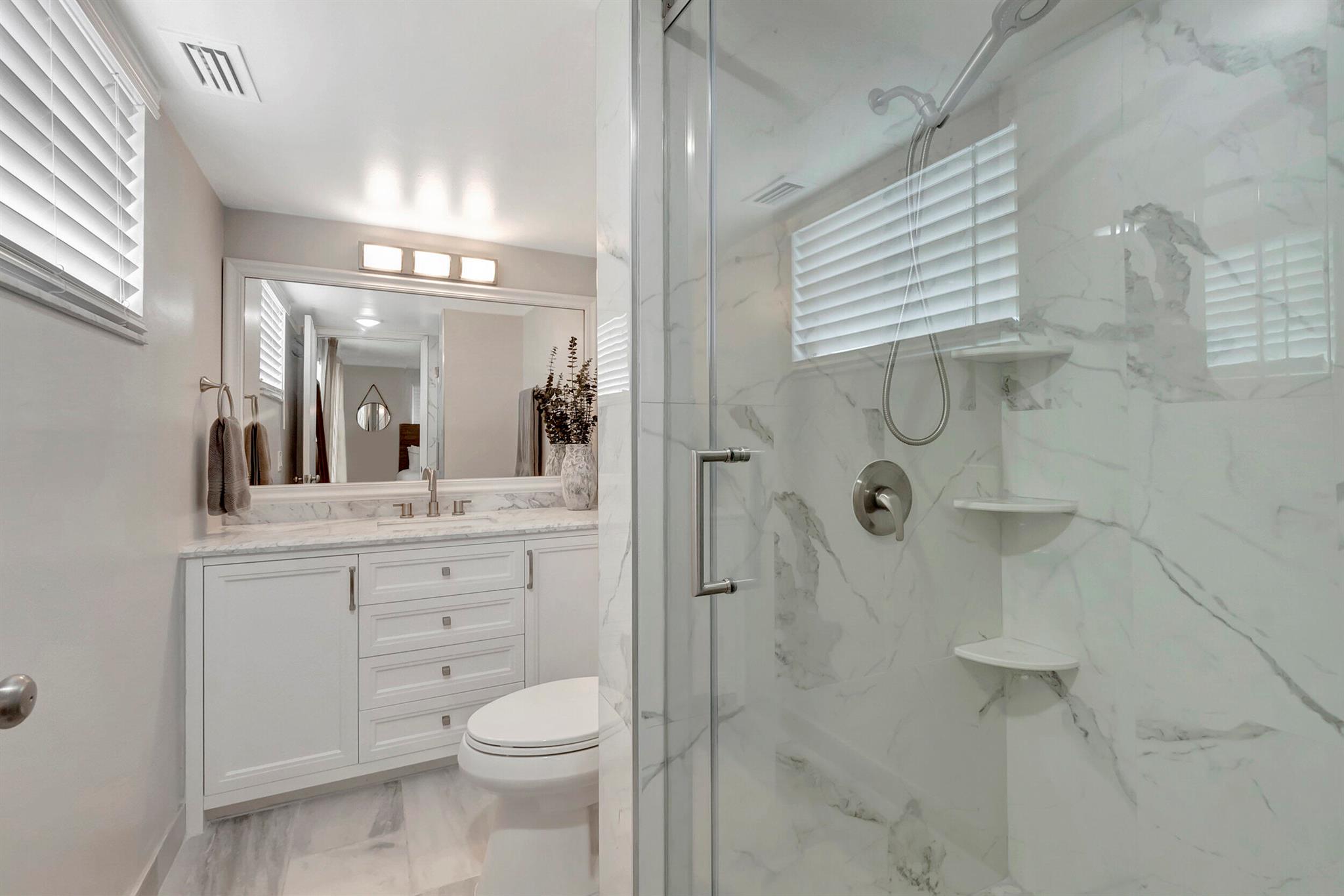 SHORT TERM RENTAL! Discover the epitome of modern living in this stunning first floor season rental, nestled in an exclusive over 55 community. Immerse yourself in contemporary elegance boasting a just completed renovation of the clubhouse and a suite of amenities that redefine luxury living! This rental is just steps from the pool, and Publix, and a short drive to the main clubhouse. This unit was recently renovated with a new kitchen and appliances, new bathrooms, new a/c unit, and a perfect patio for morning coffee or evening happy hours.