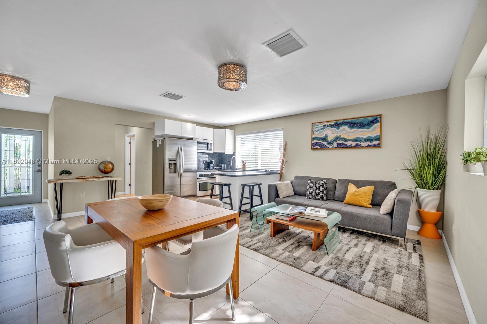 Impeccable single family 3/3. Recently renovated and furnished with taste. Very calm street and convenient locations. Fantastic garden with pool, bbq, lounge area, training camp and fruit trees. FPL and internet are included in the price.