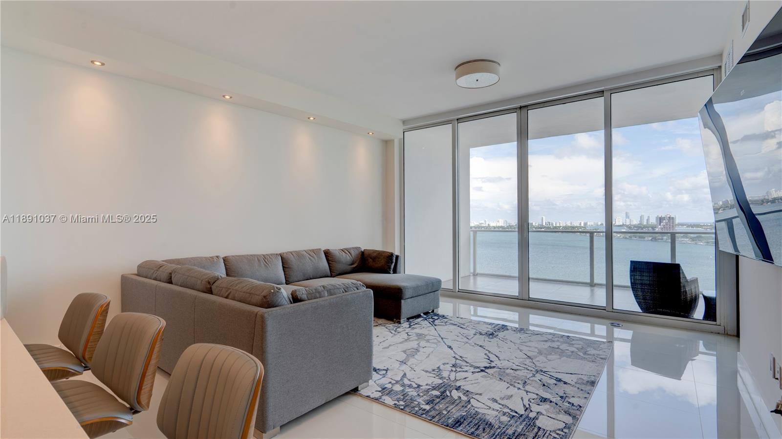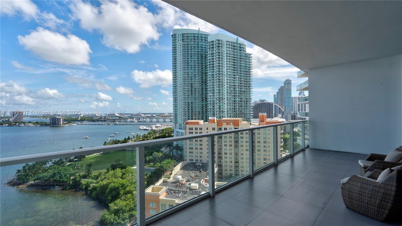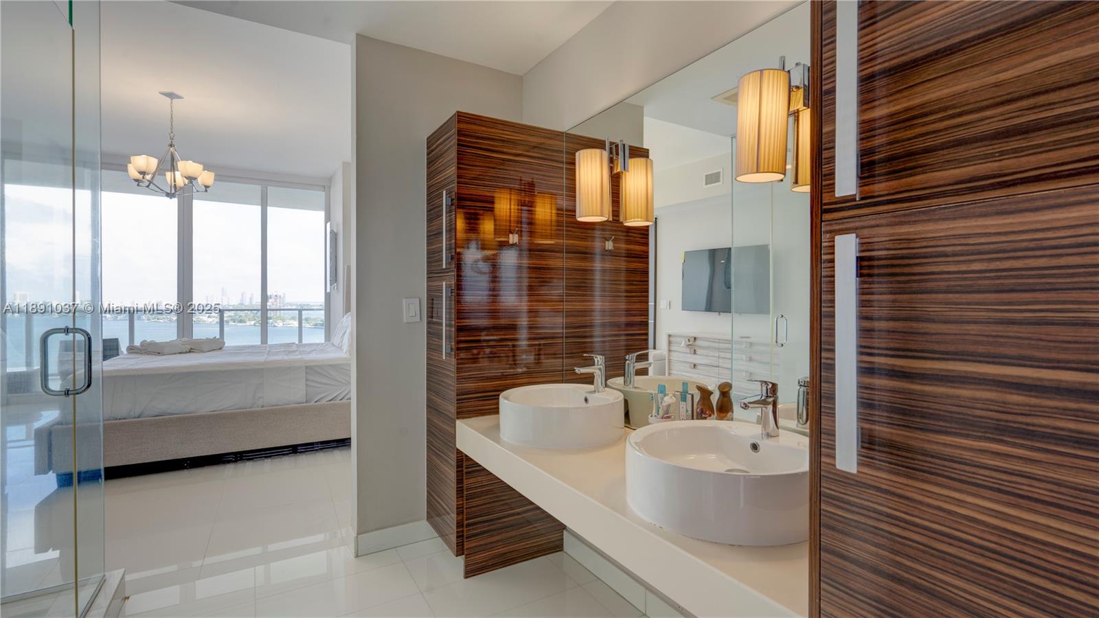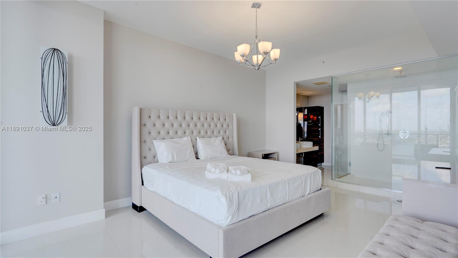 Available for short term rental. Experience luxurious waterfront living at Paramount Bay with panoramic water views. This direct-bay condo offers a private elevator, sleek 24x24 tiles, custom wooden doors, and a renovated kitchen and baths with California Closets. It comes partially furnished with new TVs and stylish furniture, and is available today for either short-term or long-term stays. Enjoy resort-style amenities: sunrise and sunset pools, deluxe club rooms, business center, and lounge with large TV and kitchen, plus more. Flexible layout can live as a one bedroom plus office/den or function as a true two bedroom. And the views... There's no better way to start your day with these views!