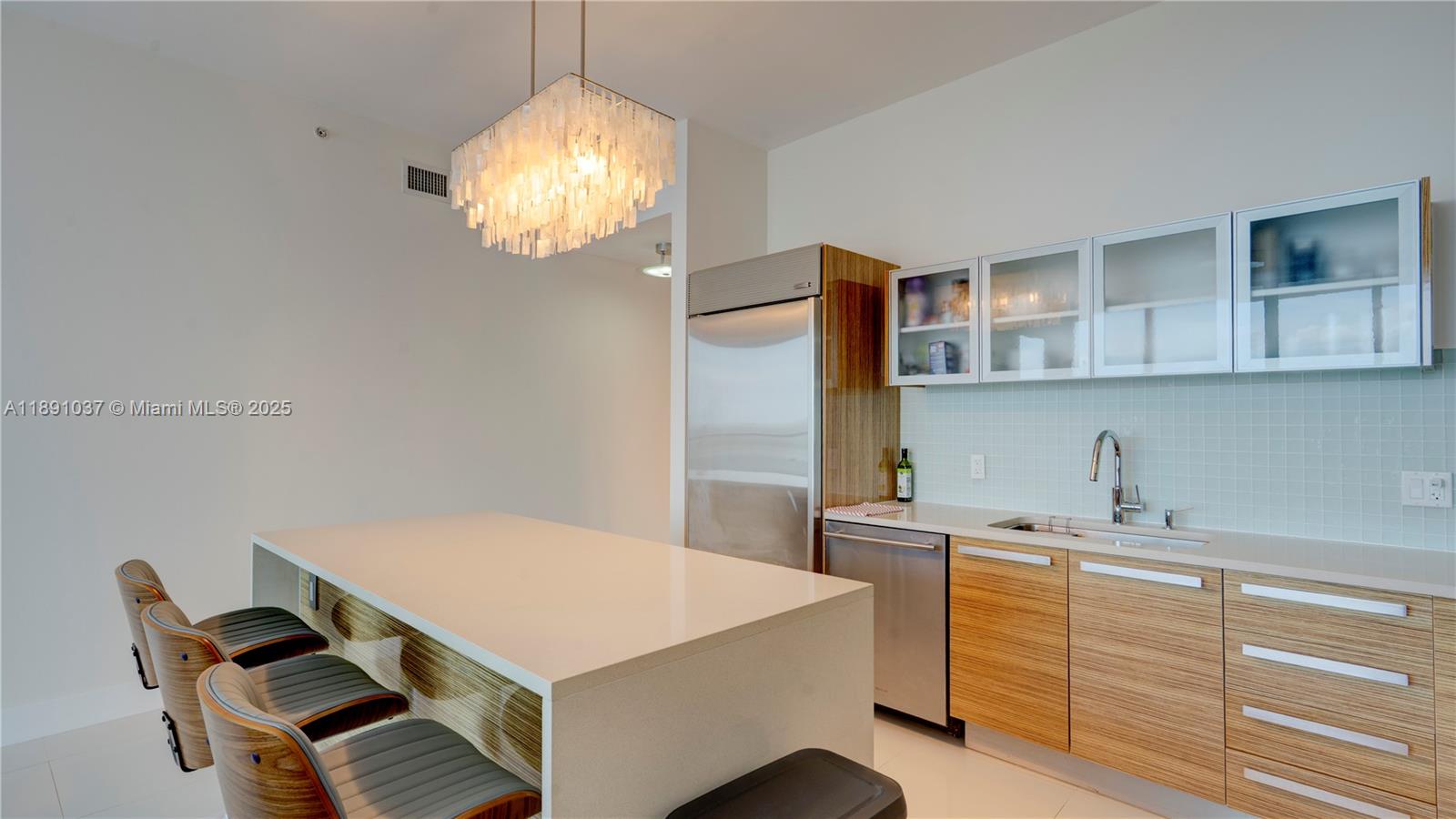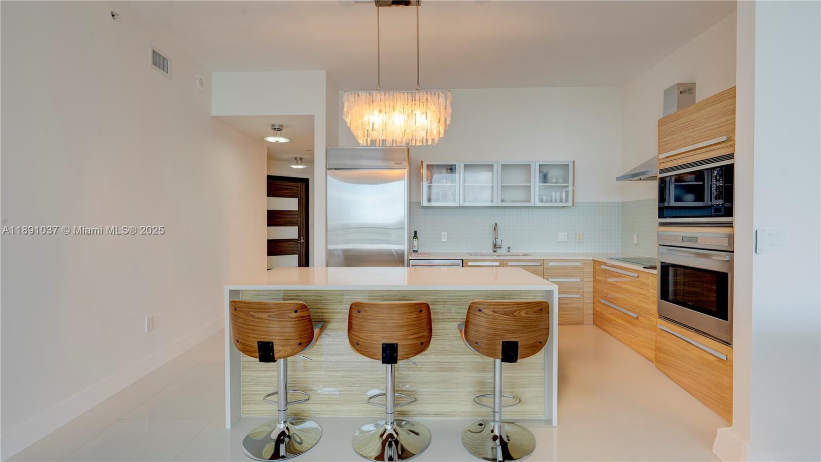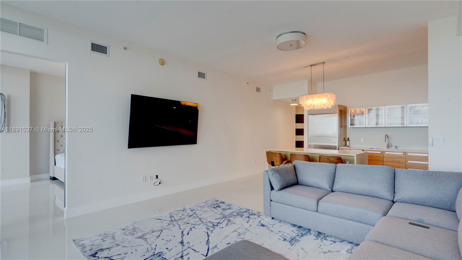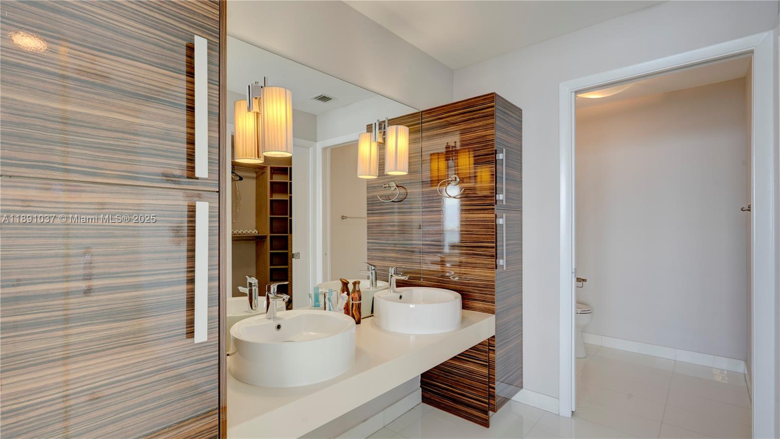 Available for short term rental. Experience luxurious waterfront living at Paramount Bay with panoramic water views. This direct-bay condo offers a private elevator, sleek 24x24 tiles, custom wooden doors, and a renovated kitchen and baths with California Closets. It comes partially furnished with new TVs and stylish furniture, and is available today for either short-term or long-term stays. Enjoy resort-style amenities: sunrise and sunset pools, deluxe club rooms, business center, and lounge with large TV and kitchen, plus more. Flexible layout can live as a one bedroom plus office/den or function as a true two bedroom. And the views... There's no better way to start your day with these views!