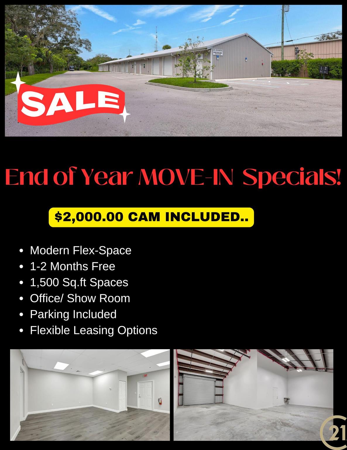 Modified Gross Lease- Taxes and Insurance are included in the $17 per sq ft. Each Bay is 1500 sqft. Six units available. Whether you need a single unit or multiple spaces, we offer flexible leasing options.Modern Flex Office Spaces. Ideal for contractors, remodelers, roofers, HVAC, plumbers, electricians, landscapers, pool services, e-commerce operators, cabinet & countertop makers, tile/flooring showrooms, and more. Each unit features its own private bathroom, showroom/office, and a functional warehouse/storage area .Move-in ready, sleek, and versatile. Situated on Oleander Avenue, a busy industrial corridor, with excellent access to I-95, US-1, and the Florida Turnpike.