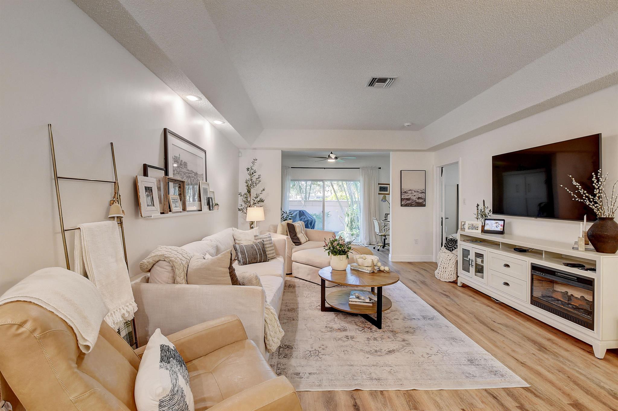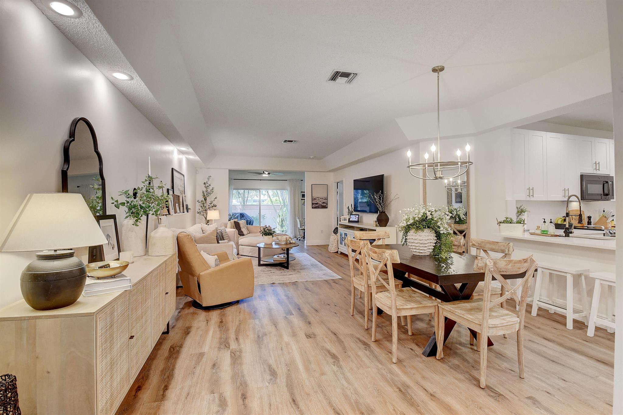 Recently renovated 2/2 condo plus office/ sunroom with and bonus murphy bed. You will feel like you walked into a Better Homes and Gardens feature property when opening the front door. Quartz counters tops, stainless steal appliances and beautiful flooring through out this open and airy floor plan. Only a few minutes walk to the local community pool. Located in the Active 55 and older community of Palm Isles which is just minutes from Delray Beaches Market Place and about 10 mins to Downtown on Atlantic Ave. Palm Isles amenities include multiple tennis and pickleball courts, indoor and outdoor pools great for swimming year round. Rent includes Water, ADT, Cable and internet. Property is available for a seasonal as a furnished seasonal at $4600 monthly.