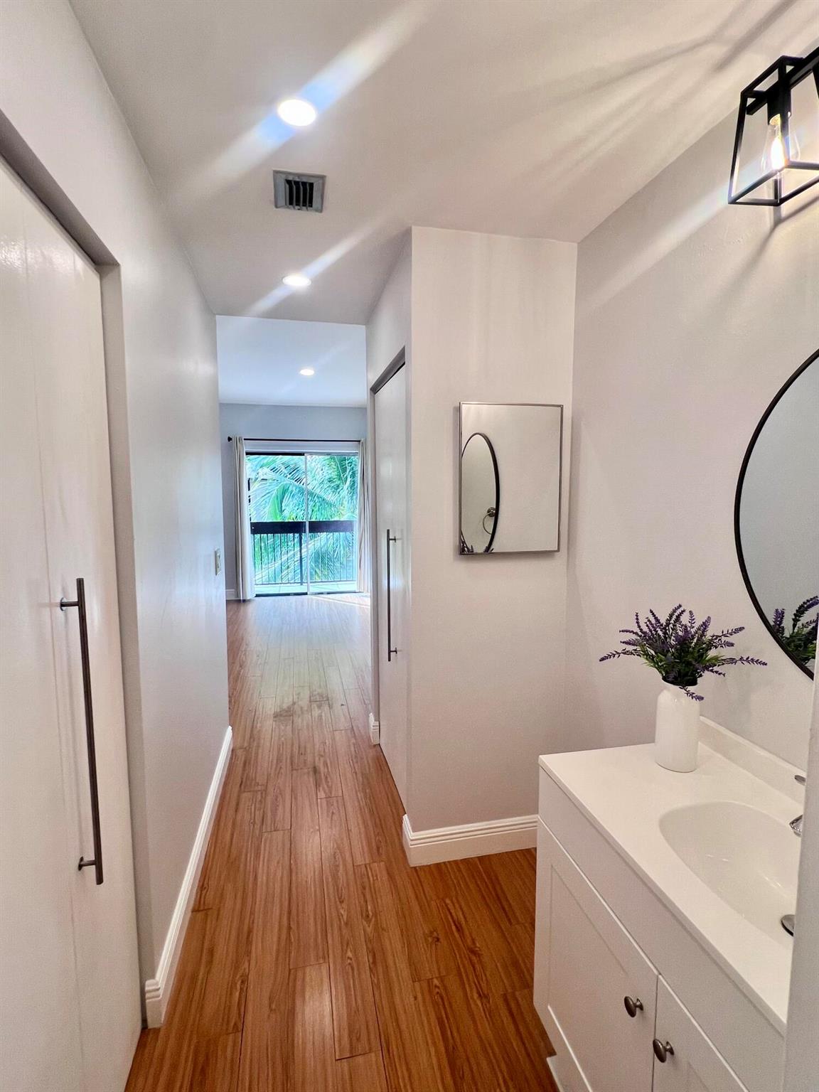Beautiful 2/2 second floor renovated condo with vaulted ceilings and recessed lighting through out. Full size Washer & Dryer inside unit, a large enclosed patio. Close access to I-95, Turnpike, and the Sawgrass Expressway in the Meadowridge neighborhood of Deerfield Beach. Well maintained community and safe area. 10 minute drive to the beach. 2 spacious bedrooms (1 with walk-in closet). 2 full baths. Renovated modern kitchen, bathrooms and floors throughout. Updated stainless steel appliances. 1 designated parking space with plenty of guest parking spaces available. NO PETS, NO WORK VEHICLES, NO MOTORCYCLES, per HOA. NO SMOKING. (allow 30 days for approval). 1 year (renewable) lease. Includes: Water, Sewer, Basic cable, well maintained grounds with lake, pool and and clubhouse with gym.