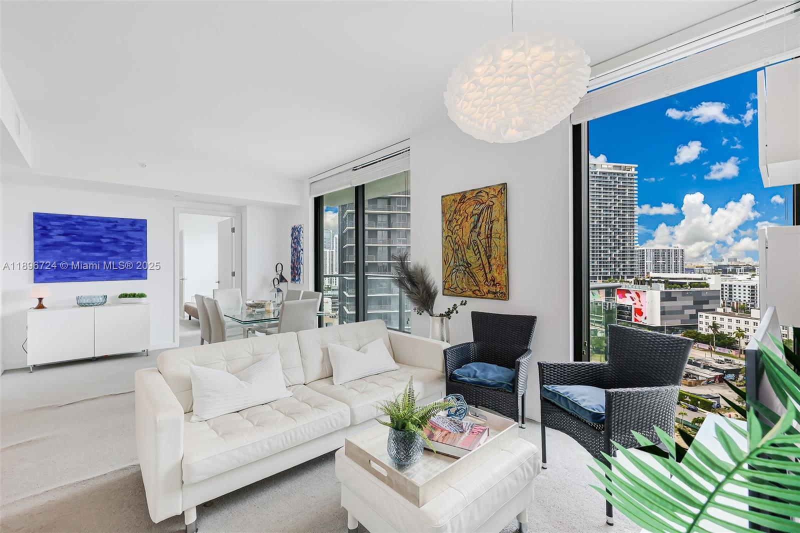 Spacious, bright and elegantly furnished two bedroom/ two bathroom corner unit with city views to enjoy the amazing Miami sunsets. Unit has 9ft ceiling and a split floor plan with the bedrooms on both ends which makes it a traditional and comfortable space. The unit is available for a 6 month or a one year lease for the same price. It has everything you need from towels, to linens, cookware, and more. The furniture has a neutral style that you will enjoy. The building is located walking distance to Midtown Shops and other nearby restaurants and cafes. Amenities in the building include: a rooftop pool overlooking the bay, a second pool on the fifth floor, gym, spa, party room, kids, room, tennis, and racquetball. The building has valet, security and a front desk attendant.