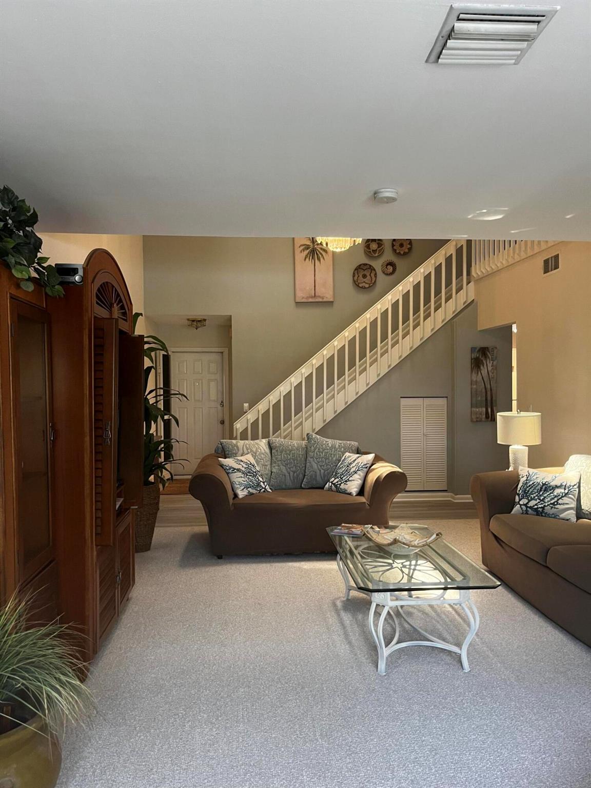 Looking for a perfect place to rent close to Jupiter beach? This unit has all the comforts of home and even has bikes to enjoy. This lovely 3 Bedroom townhome with Garage is now offered turn-key for Season starting January 3rd thru April 4th, 2026. Tastefully furnished with soaring high ceiling in living area, new flooring on 1st floor, spacious eat in kitchen, light and bright with large living and dining areas as well as your own private screened in porch.Perfectly located near Jupiter beach, community pool and hot-tub overlooking beautiful lake, tennis/pickle ball courts, restaurants and shopping all within walking distance. The perfect place to enjoy Jupiter!