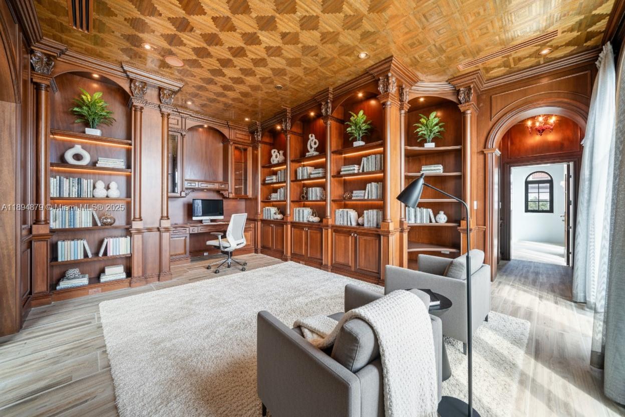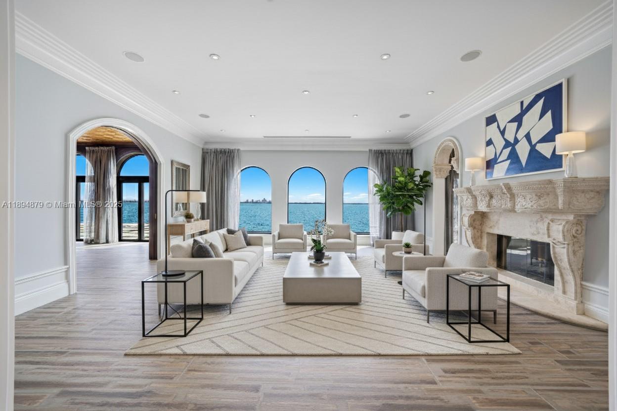 Exceptional Bayfront Mediterranean villa delivering luxury waterfront living with south exposure and one of Miami’s most panoramic skyline views on exclusive, gated North Bay Island. This 7,531 SF mansion offers 6 bedrooms, 5.5 baths, boasting 118 ft of waterfrontage for privacy and stunning bay views. An expansive deck showcases a 40+ft infinity pool ideal for enjoying Florida sunsets. A covered outdoor entertainment room creates seamless indoor-outdoor living. Inside, sun-filled interiors flow among living, dining, gourmet kitchen (with dual appliances), classic library, and media room. The sculptural staircase rises to the bedrooms, which include two primary suites with private terraces. 2-car garage + 2 gated driveway pkg. Available now, unfurnished, 1-year minimum, renewable.