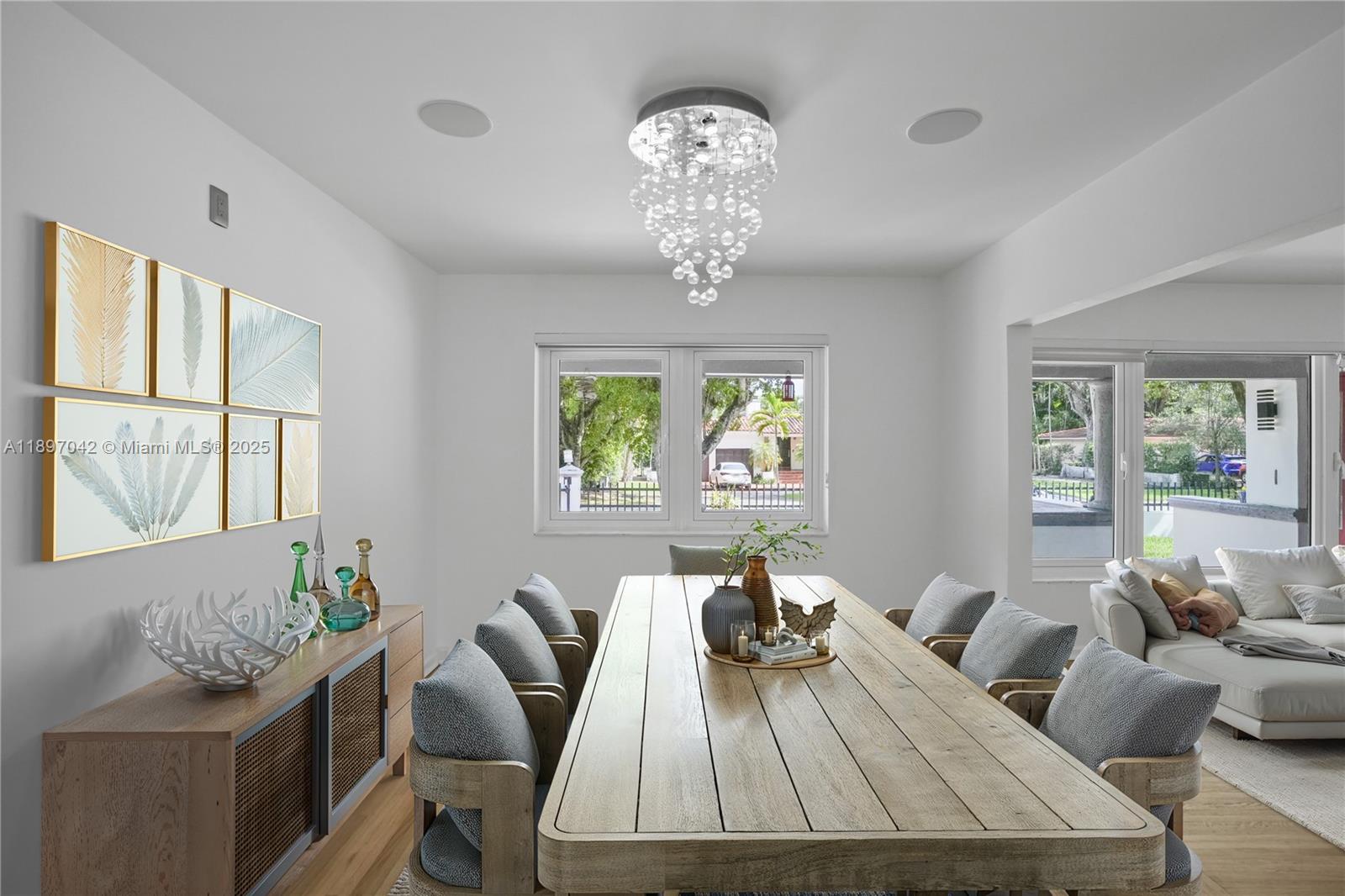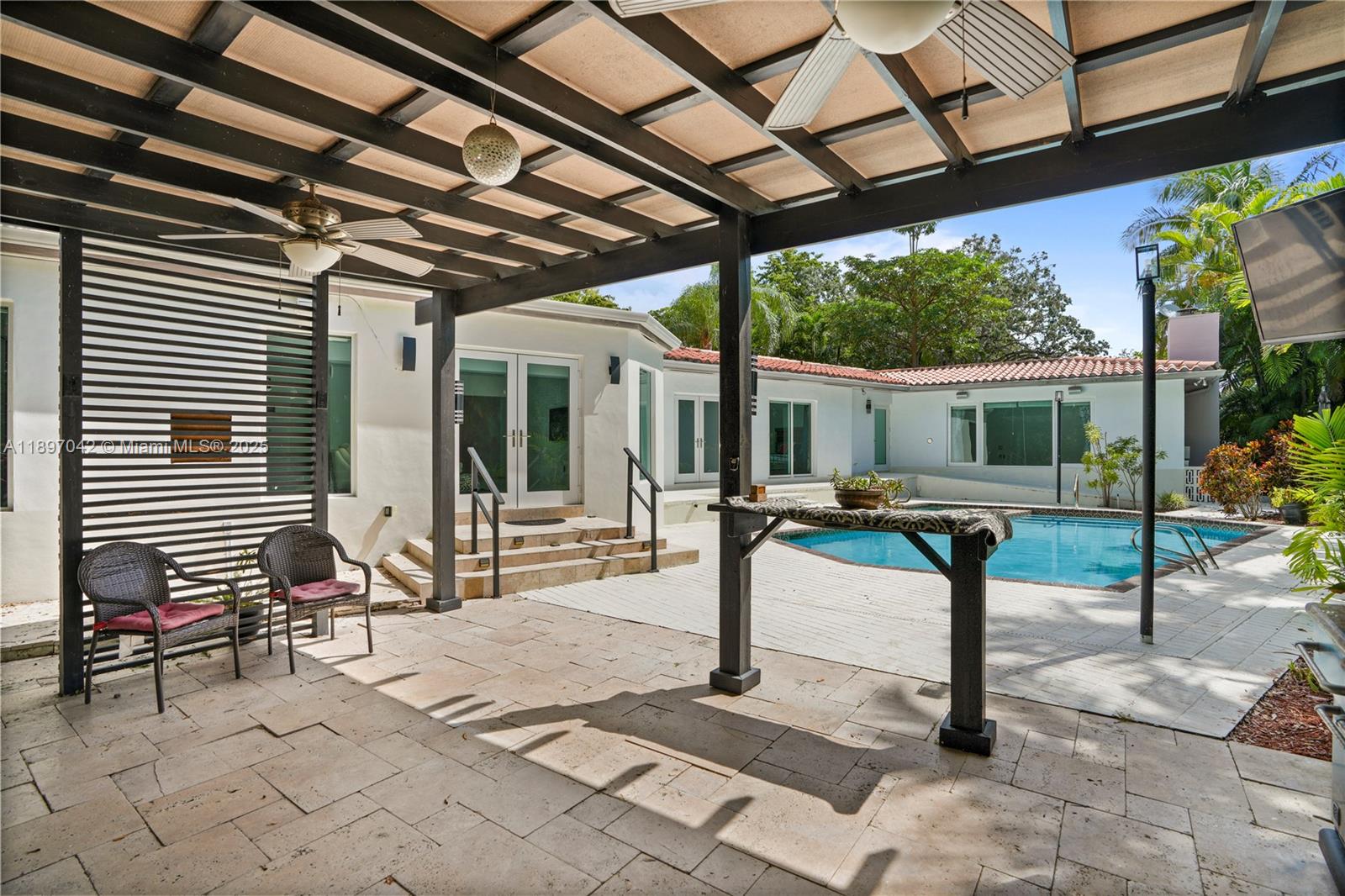 Discover timeless Coral Gables elegance in this updated 4BR/3BA Riviera home on a lush 13,000 SF lot. Featuring vaulted ceilings, hardwood floors, impact windows, and a decorative fireplace, the bright interiors include a gourmet Miele kitchen, versatile living spaces, and a serene master suite with California closets and spa-like bath. Modern upgrades such as Sonos audio, Culligan water filtration, and keyless entry complement outdoor amenities including a pool/spa, pergola, and full summer kitchen. With a gated driveway, EV-ready garage, and prime location near UM, Riviera Golf Club, Merrick Park, and top schools, this home is a rare Coral Gables gem.