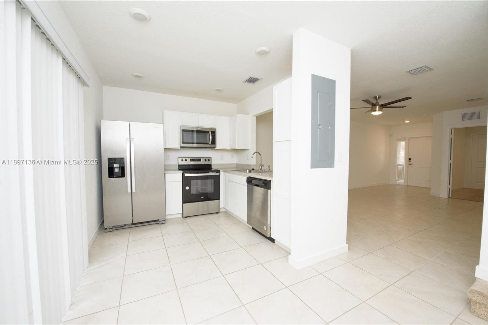 Spacious and modern 3-bedroom, 3-bathroom townhouse in the desirable Keys Pointe community. This home offers an ideal layout with one bedroom and full bathroom on the first floor—perfect for guests or multigenerational living. The kitchen features stainless steel appliances and opens to a bright living and dining area. Enjoy a private fenced backyard, in-unit laundry, central A/C, and assigned parking. Community offers resort-style amenities including pool, clubhouse, gym, basketball court, and playground. Conveniently located near the Turnpike, outlets, restaurants, and a short drive to the Florida Keys. Tenant Occupied. Available Dec 15, 2025. Pets welcome with an additional deposit. Move-in requires the first month and two security deposits. No association approval. Easy to show.