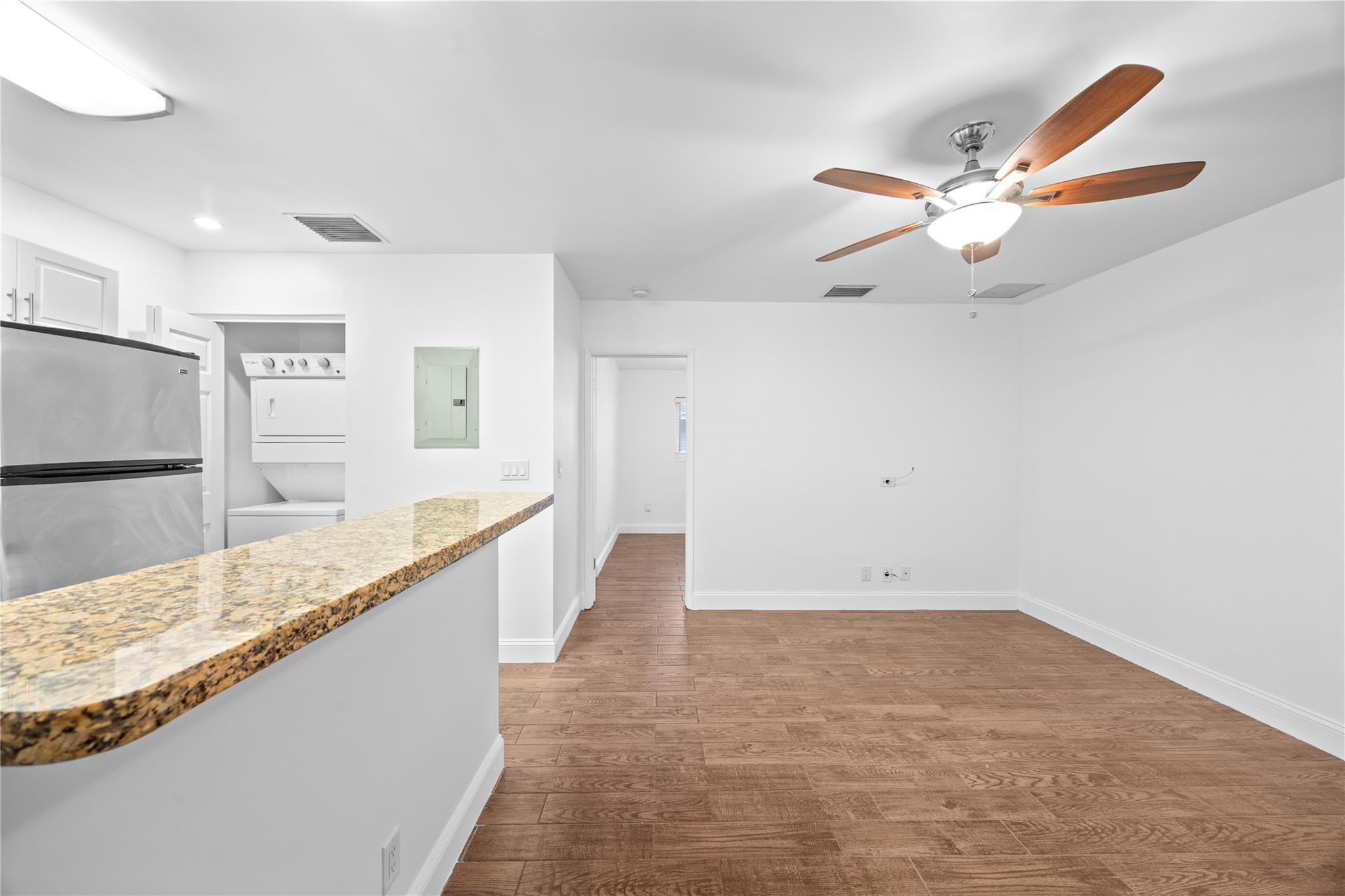 LOCATION!!! LOCATION!!! A stunning 1 Bedroom/1 Bathroom apartment in the tremendous area of Harbordale. FULLY remodeled apartment with a private backyard. Stainless steel appliances, a FULL-SIZE WASHER/DRYER, and a Custom kitchen and island, with GRANITE COUNTERTOPS. NEW Central AC, impact windows, and much more! WATER/TRASH INCLUDED IN RENT! Across the street from Broward Health Hospital and Whole Foods. A few minutes away from LAS OLAS BEACH, DOWNTOWN FORT LAUDERDALE, FLL AIRPORT, restaurants, and supermarkets. A WALKTHROUGH VIDEO IS AVAILABLE UPON REQUEST. RAPID APPROVAL. NO ASSOCIATION. *MOVE-IN MO NEY BASED ON QUALIFICATIONS* Minimum 1-year lease, NO SHORT TERMS OR CORPORATE LEASES. The first and second months' rent, plus a one-month security deposit, are required.