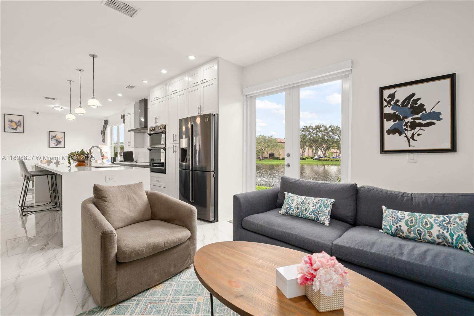 Experience luxury living in this renovated two-story lakefront home with 3 bedrooms, 2.5 bathrooms, and an open-concept layout. Enjoy the massive walk-in closet for the primary suite. Modern finishes include white porcelain floors downstairs, wood-style flooring upstairs, a striking wood staircase with steel railings, and a chef’s kitchen with quartz island and stainless appliances.Additional upgrades: brand new roof, professionally installed Tesla charger, impact front door and rear windows, modern bathrooms, and a washer/dryer in the living area. Relax on the patio with lake views, or enjoy community amenities: pool, playground, 24/7 security. Located in A-rated school zones, minutes from Weston Town Center, shopping, dining, and highways.