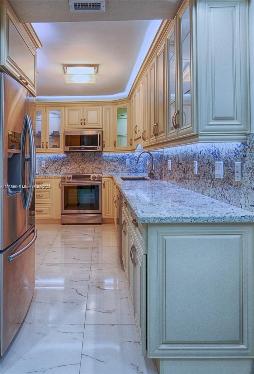 Ocean View 1-Bedroom in The Plaza of Bal Harbour Fully renovated 1-bedroom, 1.5-bath apartment at The Plaza of Bal Harbour, featuring 993 sq. ft. with breathtaking ocean views and a spacious balcony. Modern kitchen with granite countertops, elegant full-size bathtub plus independent shower, built-in bar for entertaining, open layout, and large walk-in closet. Exclusive full-service oceanfront building with 24-hour security, valet, bellman, pool, hot tub, gym, and community room. Walking distance to Bal Harbour Shops and fine restaurants. Enjoy the beach, easy to showing.