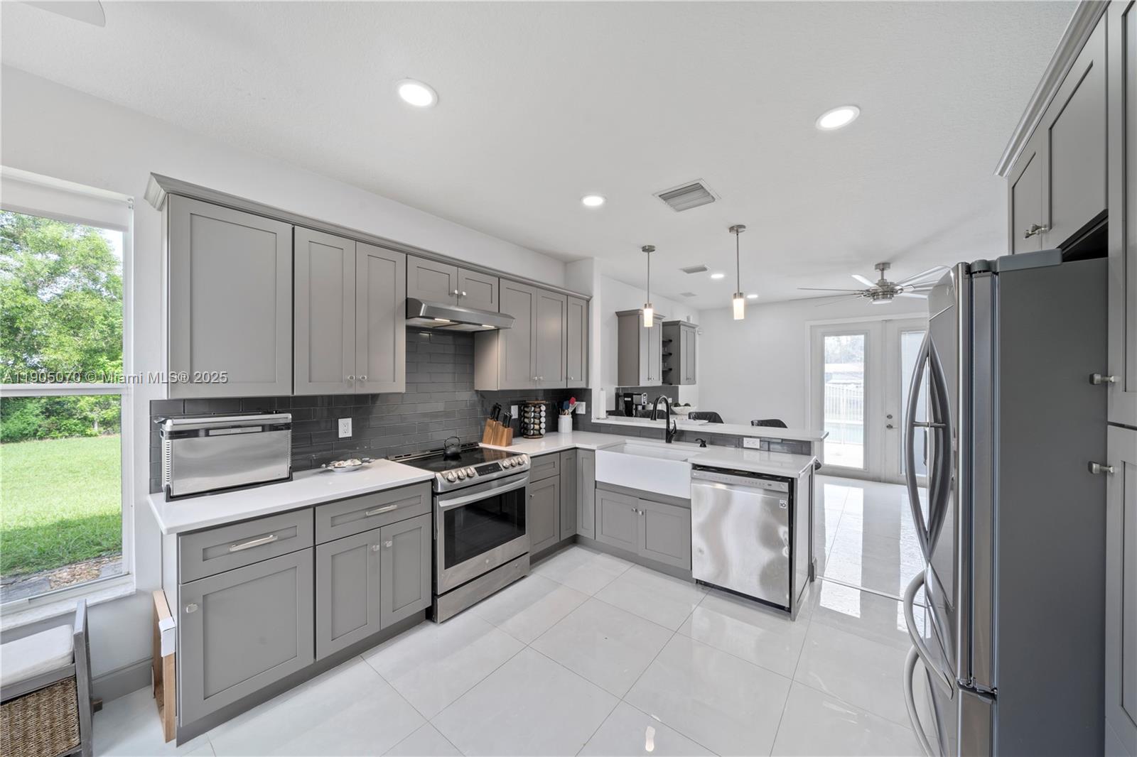 Spacious 3-bed, 2.5-bath pool home on 1.14 acres. Features a 5-car garage, including an 800 sq. ft. detached garage. Enjoy a large pool with a gazebo for entertaining. Newly remodeled kitchen with quartz countertops and top-of-the-line stainless steel appliances. Updated bathrooms with double sinks, tub, and separate shower. Master suite with a walk-in closet. Includes recessed lighting throughout the house, built-in surround sound, solar panels for energy savings, and a storage shed. A perfect blend of luxury and comfort!