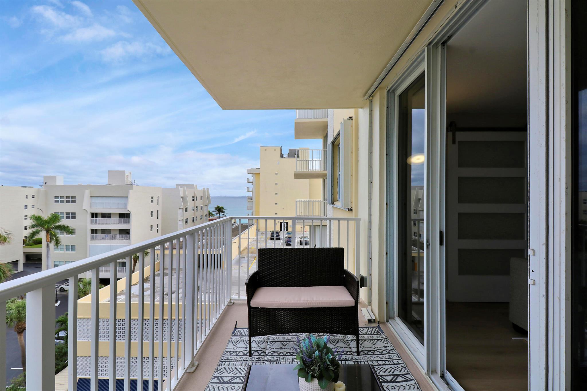 Welcome to this impeccably renovated and fully furnished 1BR/1.5BA condo in highly desired Le Chateau. This stunning residence features an open, high-end kitchen, premium finishes, designer furnishings, housewares, and impact windows. Simply unpack and enjoy! Relax on your private patio offering peaceful northern ocean views. The community is directly on the gorgeous beach and offers a beachfront pool, fitness center, game room, and more. Covered reserved parking included. Spend your winter in luxury--available mid/late December through March 2026. Minimum 90-day rental.