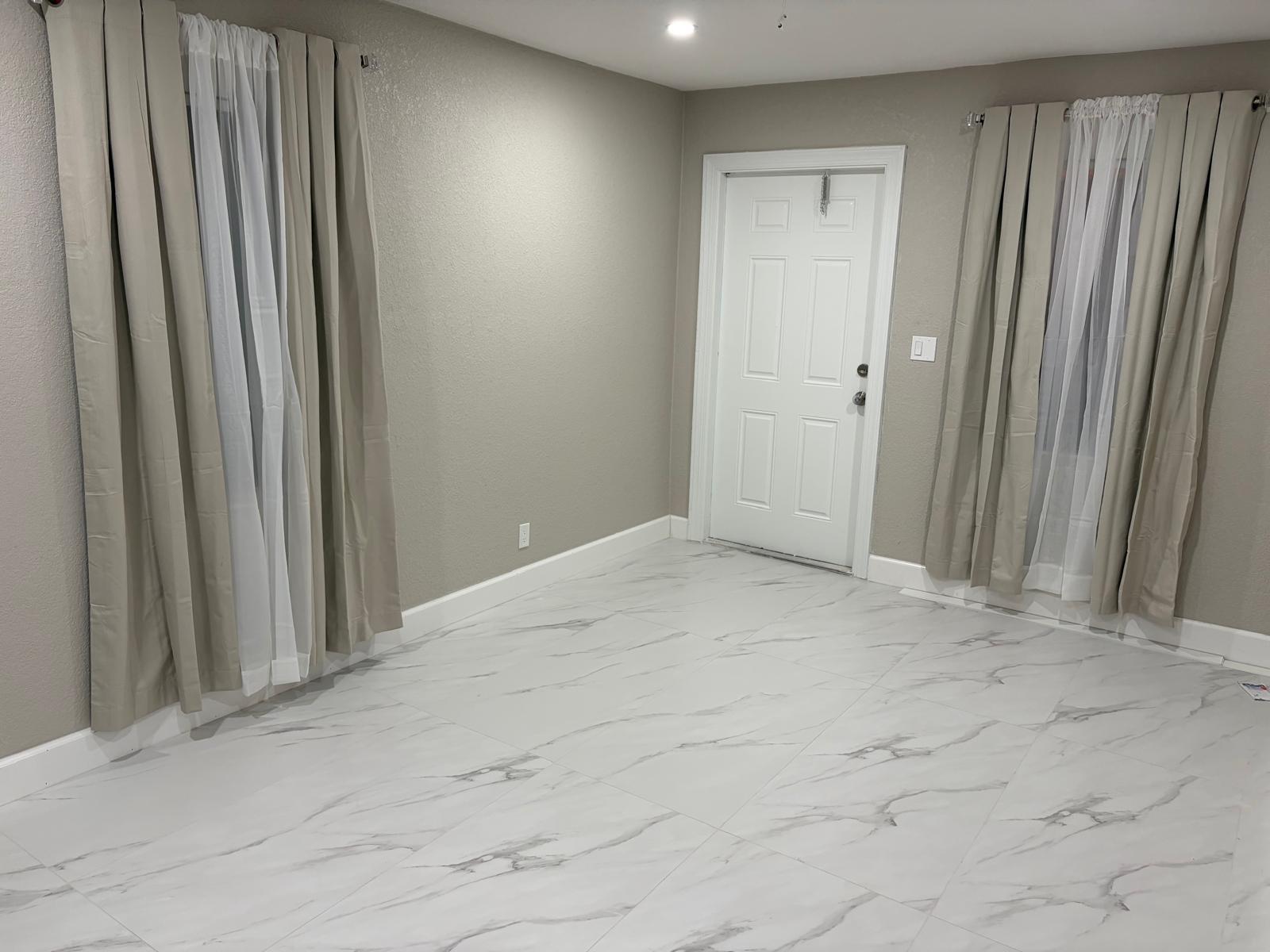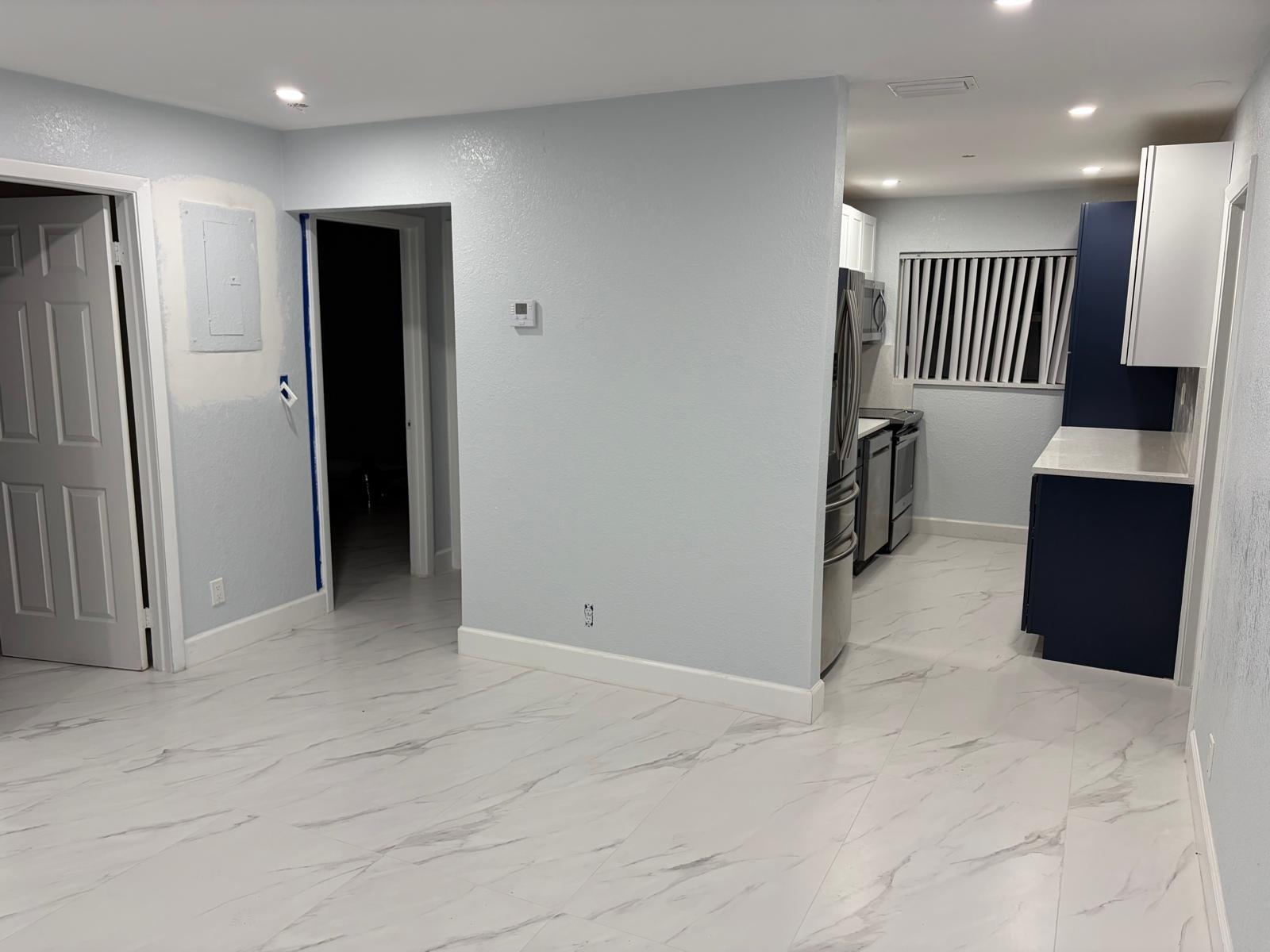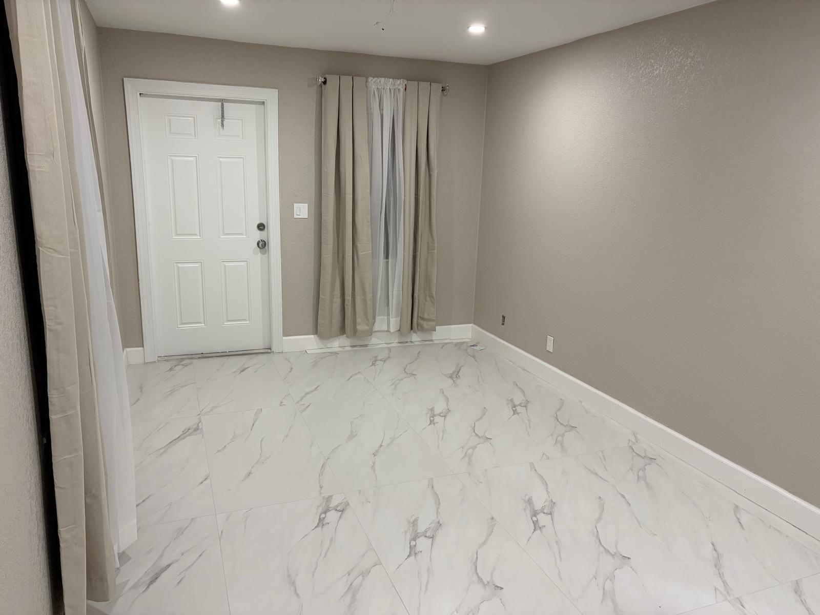 3 bedroom 2 bathroom with outdoor lounge seating space, excellent for entertaining or just enjoying the evening sunset. New stainless steel Kitchen appliances, Fridge, glass top stove, dishwasher, over head microwave, garbage disposal, motion sense sink faucet. Glass enclosed stand up shower, matching vanity with LED lighted mirror. Recessed lights, ceiling fans, energy saving tankless water heater, washer & dryer, recessed lights, blackout curtain blinds, central air cooling & heating. Fenced in yard for privacy. Smoke and Carbon Monoxide Detectors with Fire Extinguishers. Free Internet provided. Fast approval.