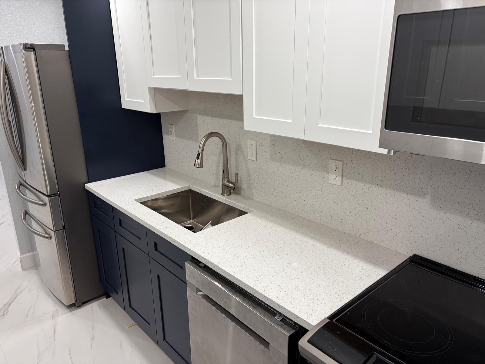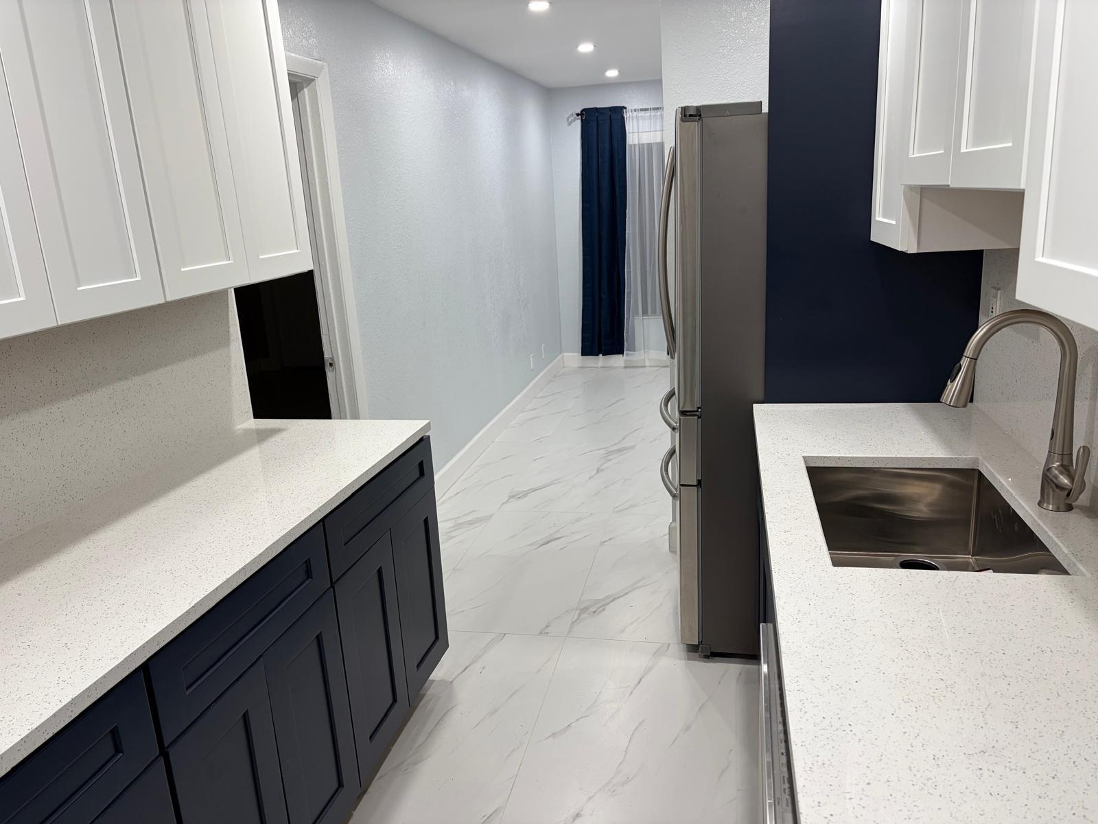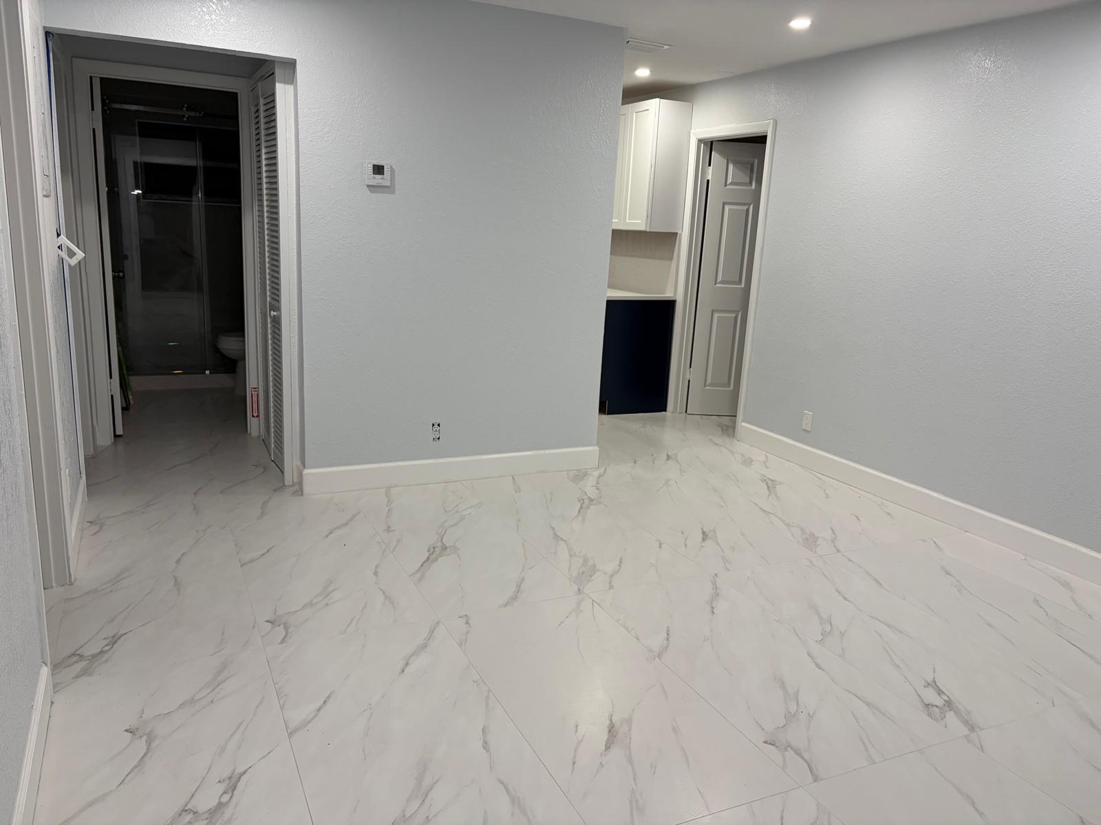 3 bedroom 2 bathroom with outdoor lounge seating space, excellent for entertaining or just enjoying the evening sunset. New stainless steel Kitchen appliances, Fridge, glass top stove, dishwasher, over head microwave, garbage disposal, motion sense sink faucet. Glass enclosed stand up shower, matching vanity with LED lighted mirror. Recessed lights, ceiling fans, energy saving tankless water heater, washer & dryer, recessed lights, blackout curtain blinds, central air cooling & heating. Fenced in yard for privacy. Smoke and Carbon Monoxide Detectors with Fire Extinguishers. Free Internet provided. Fast approval.