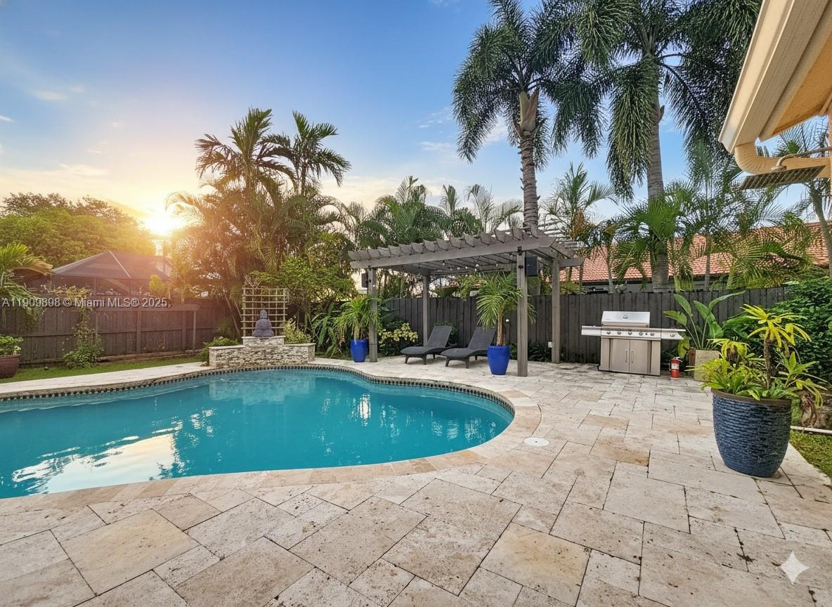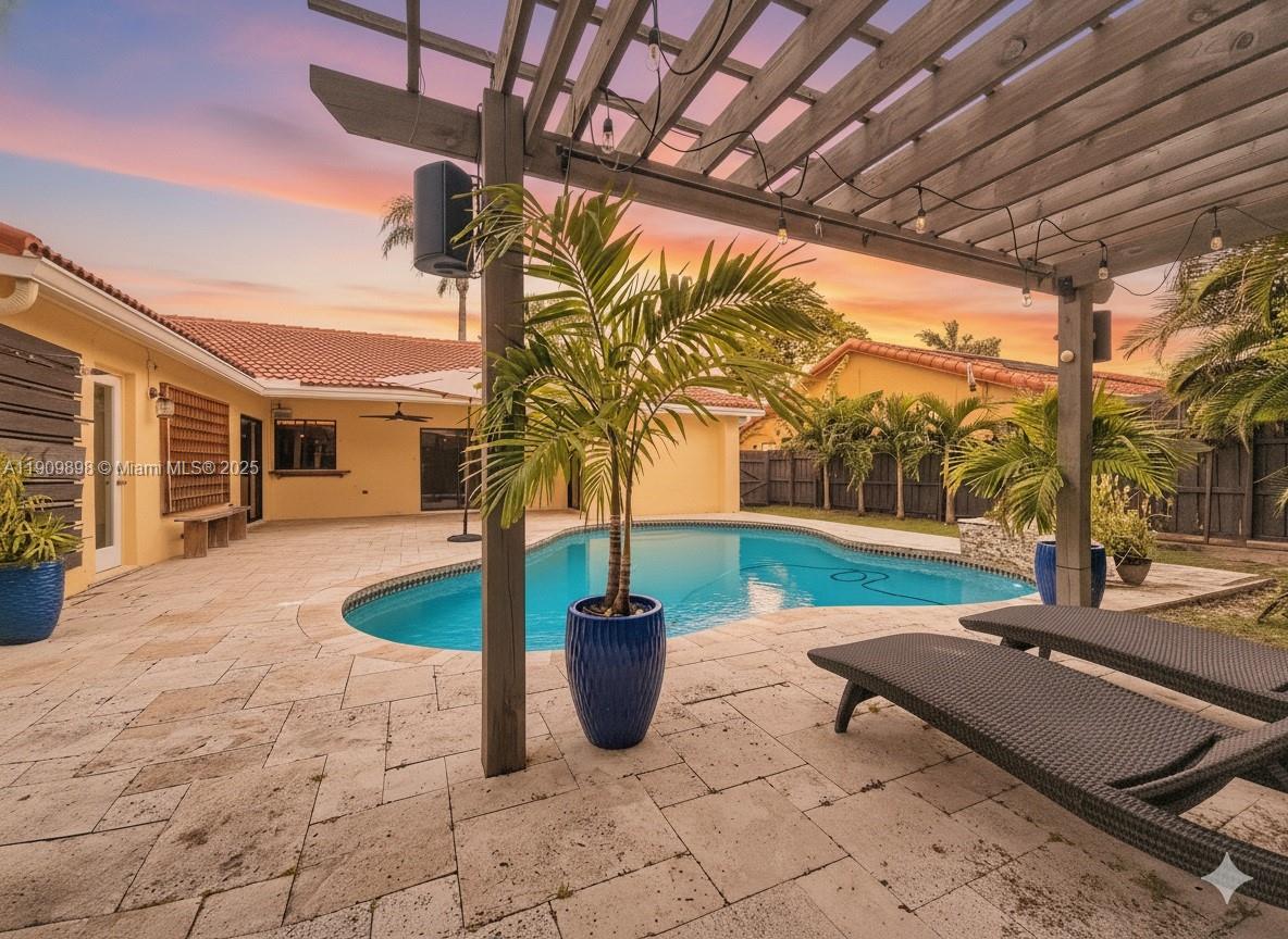Welcome to your private resort in Davie’s most sought-after A+ school zone! This stunning 4BR/3BA home features a split floor plan with a luxurious master suite, private guest wing, and a versatile flex room ideal for office, gym, or nursery. Full surrounding sound system in the TV and pool area The backyard is a tropical paradise with a saltwater pool, firepit, LED lighting, fountain & pergola. Full Security system ready for the exterior. Enjoy modern upgrades like EV charger, tankless water heater, generator switch, new AC, and parking for 6+ cars. Pool and lawn care included!