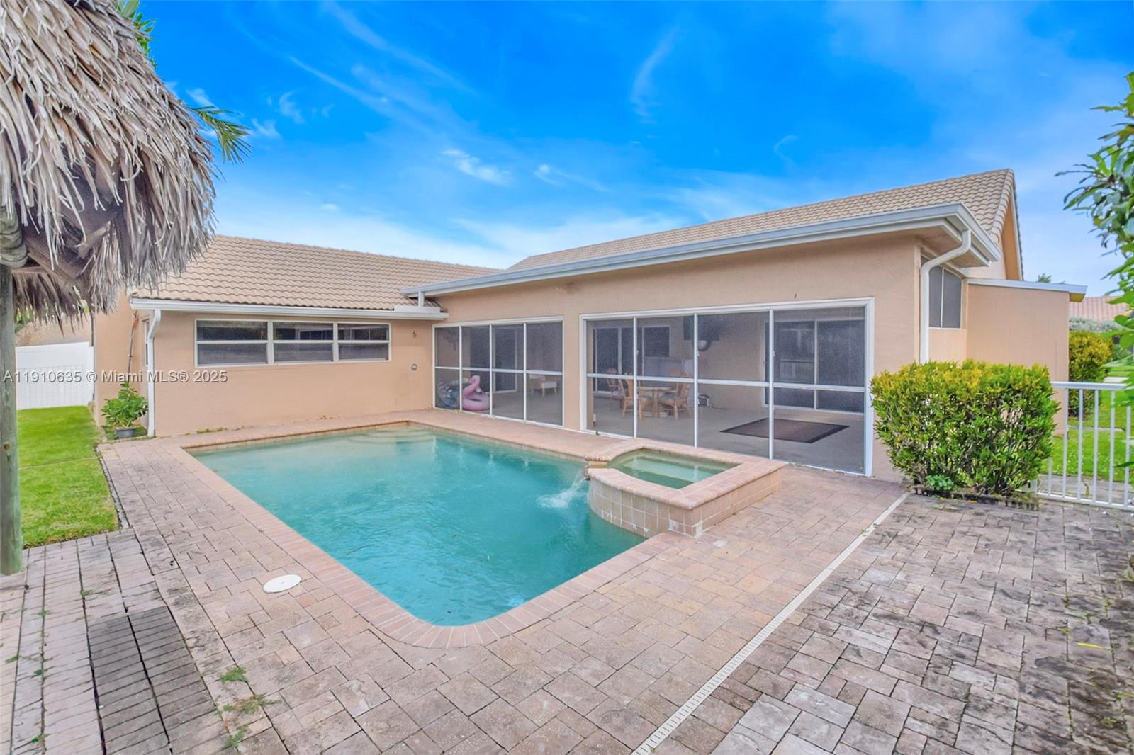 AVAILABLE JANUARY 2026! This stunning 4-bedroom, 3-bath pool home offered furnished or unfurnished is perfect for comfortable family living. Designed with a sleek contemporary style, your welcomed thru a covered porch leading into an open foyer and spacious living room that flows effortlessly into the dining area and breakfast kitchen with bar seating. A custom addition enhances the layout with a large media room, office, or study, complete with its own full bathroom. Each bedroom features generous closet space, including a walk-in closet in the primary suite. Additional highlights include a 2-car garage, laundry area, and a screened patio with deck terrace overlooking the backyard. Outdoor living with a heated pool, jacuzzi, and tiki hut—perfect for relaxing or entertaining year-round.