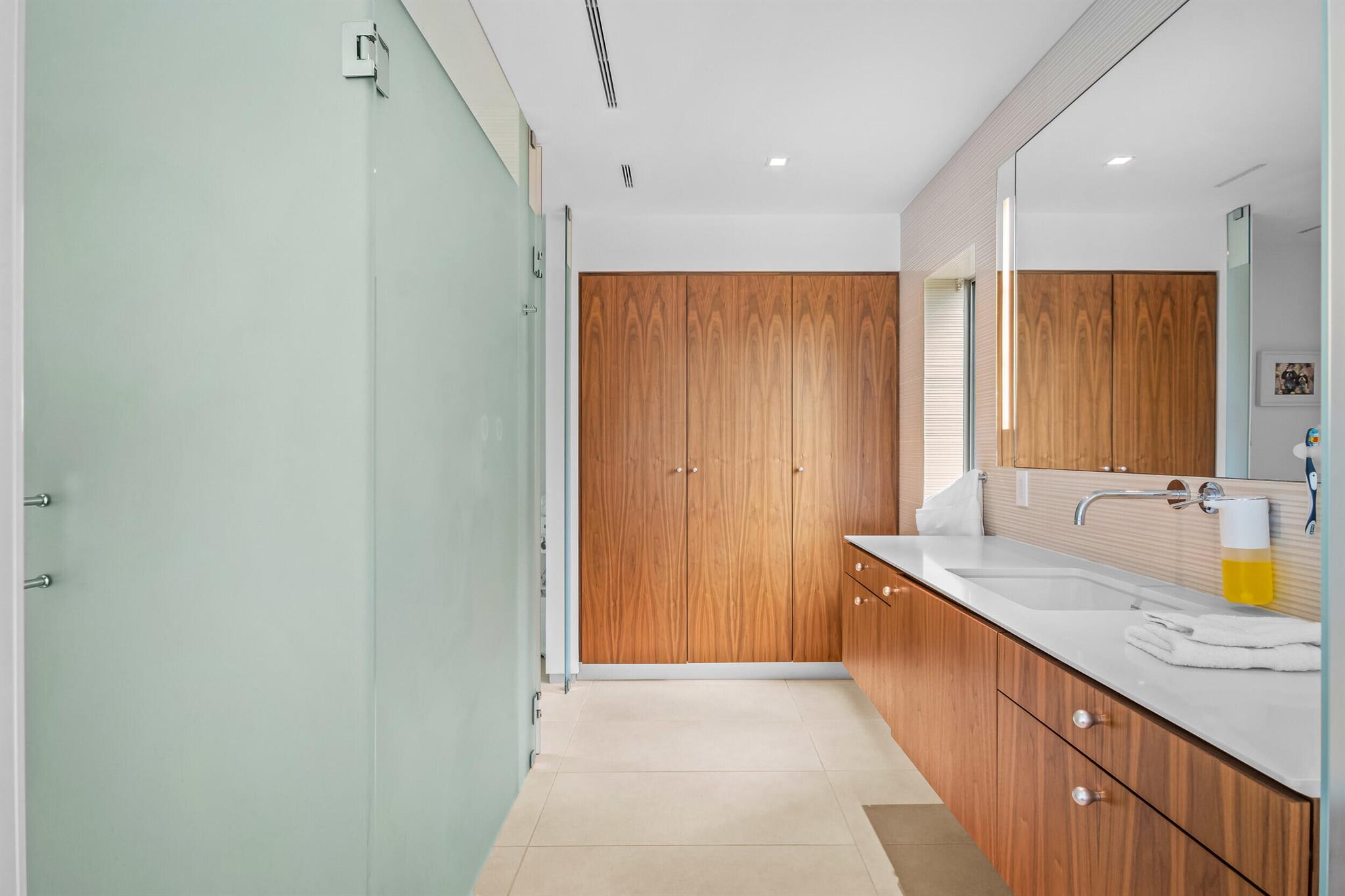 One of the best waterfront properties available in the exclusive, gated, Bermuda Rivera neighborhood! Single-story, bright, modern minimalist direct intracoastal home features an open concept floor-plan with breathtaking intracoastal views from every single room. Over sized pie-shaped backyard with comfortable and open entertainment areas with lounge seating, pool, grill, and TV. Under the sun all day, steps to the beach, right on the water. 3 bedroom, 2 bath modern minimalist home, with ultra contemporary walnut concealed kitchen (Miele & Thermador appliances) with matching high-end designer furniture. 130+ ft of direct intracoastal waterfrontage + 50 ft side canal, adding up to a one of a kind panoramic view onto the water. Quick walk to the Beach via walkway and deeded beach access!