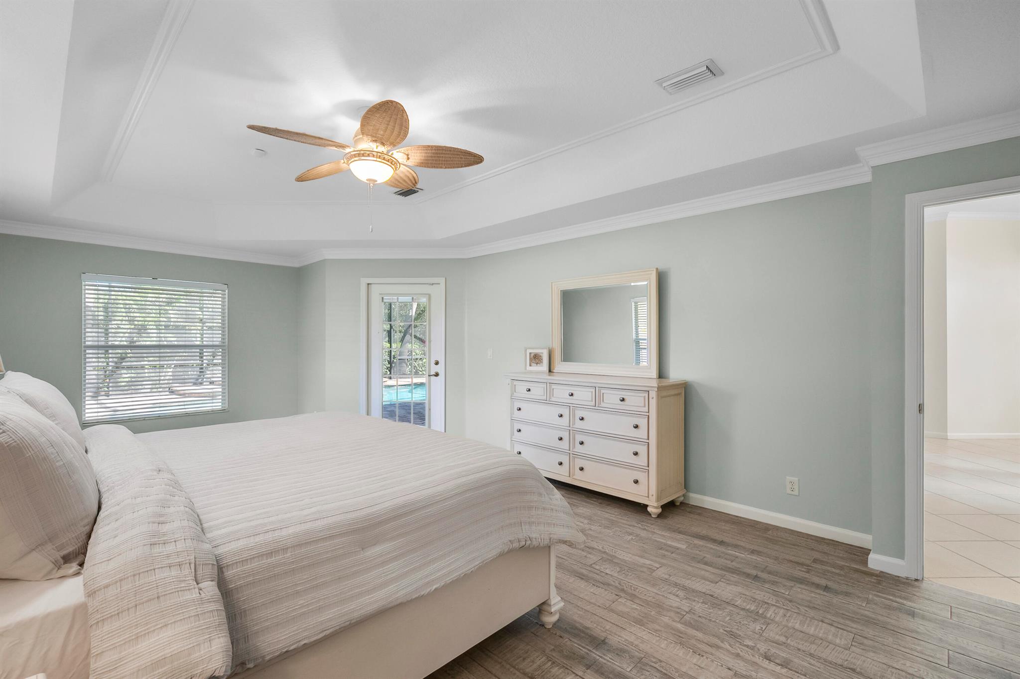 Stunning CBS home features 3 bedrooms plus flex room, 2 baths, and a beautiful private pool all meticulously maintained and move-in ready. Freshly painted interior and professionally pressure-cleaned, including the driveway and exterior, for a move-in-ready feel. The open floor plan boasts soaring vaulted ceilings, 8' doors, and elegant flooring throughout. The spacious kitchen is equipped with new appliances. Enjoy the convenience of dedicated office/flex space, generous walk-in closets, and updated major systems, including a new AC and water softener. Step outside to your private resort-style oasis featuring a heated custom saltwater pool with waterfall, fully screened enclosure, and paver patio.highlights include a paver driveway, generator hookup, fully fenced yard and No HOA