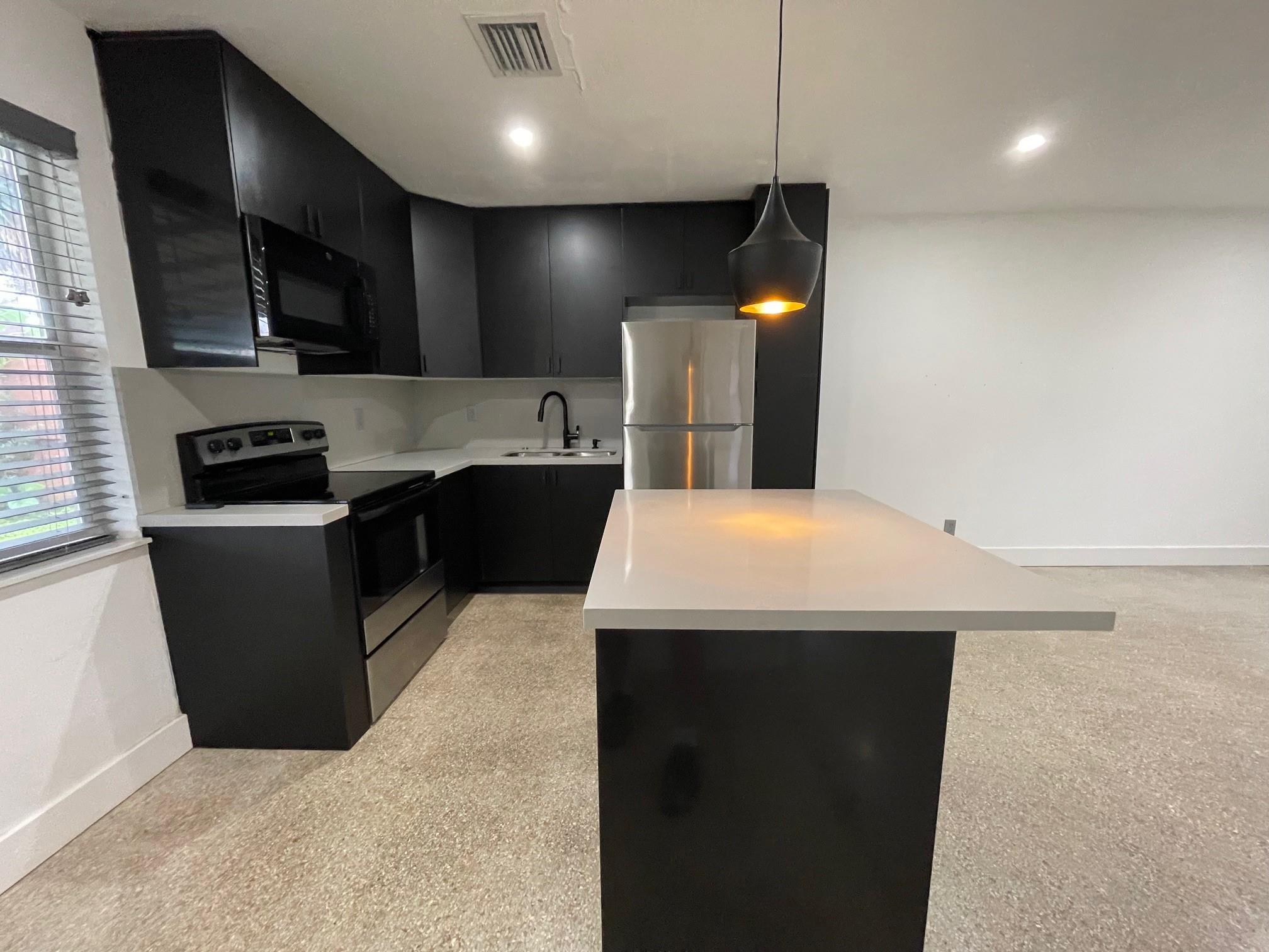 This 1 bed/1 bath unit is in an updated, private and fenced in Oakland Park triplex. There is an outdoor sitting area in the front and a private fenced in back garden (a fence between each unit) - ideal for pets. It has an updated kitchen and bathroom, a polished terrazzo floor, wooden shades, closets and lighting. It also has impact doors and windows with complimenting black shutters. There is a washer/dryer in the unit. Sprinkler water system for the landscaping. All units have parking for two cars each. It is gated. Water is included in the rent. These units are centrally located, ideal for the nightclubs, bars, restaurants and coffee shops of Wilton Drive. Come and see it!