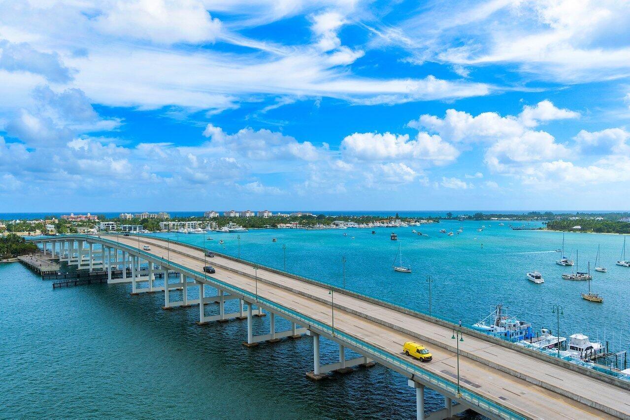 Amazing panoramic views from 12th floor corner unit, direct east facing Intracoastal to ocean views. Furnished turnkey 3BR 3BA condo, tiled floors. Unobstructed views south to Peanut Island, Palm Beach & West Palm Skyline PLUS East to Singer Island & Atlantic Ocean's horizon. Enjoy the remodeled open kitchen, great natural light with extra end unit windows. Spacious owners suite w/his & her walk-in closets. Primary bath w/double vanity, jetted bath & water closet. Assigned garage parking & climate-controlled storage unit. 24/7 manned gate, valet. New covered rooftop oasis w/pool, spa, BBQ areas, tennis, pickleball. Clubhouse, fitness center & billiard room. Waterfront walking path w/gazebo. Adjacent marina w/dry docks available, minutes to ocean, no fixed bridges! Pet friendly.