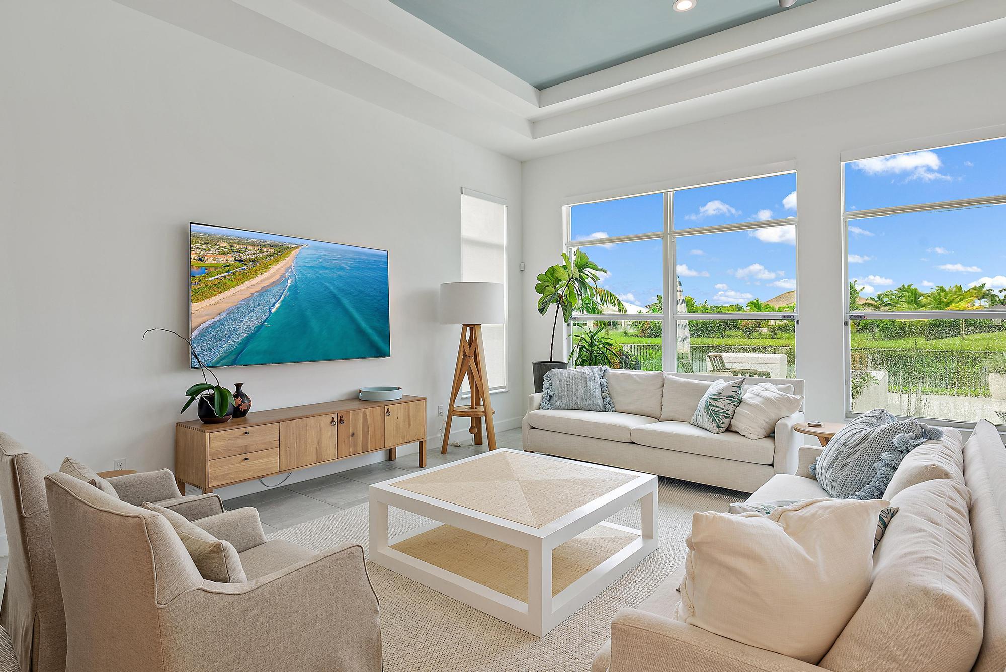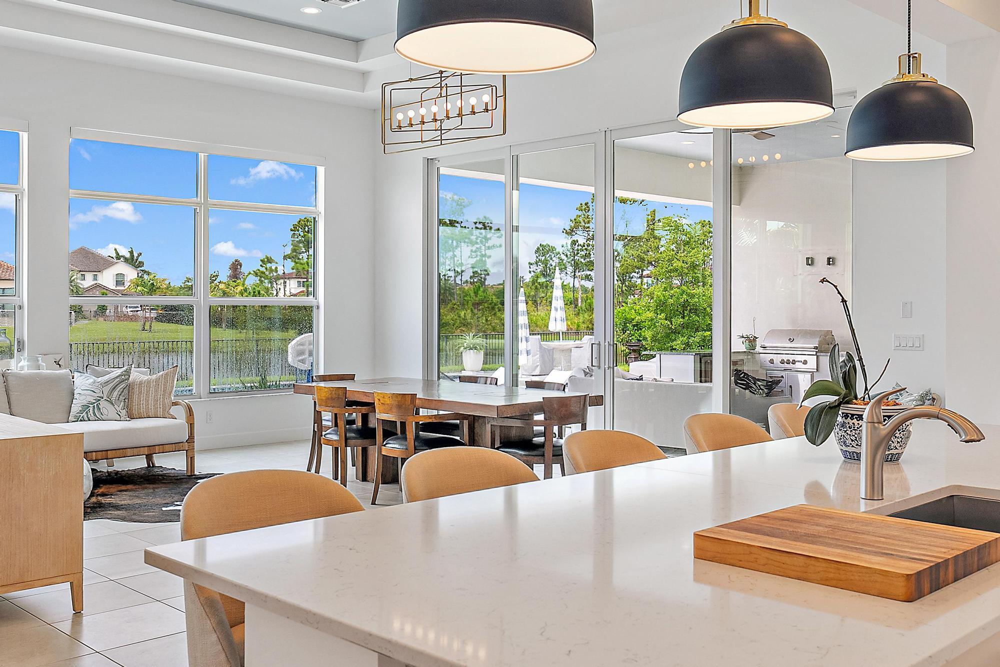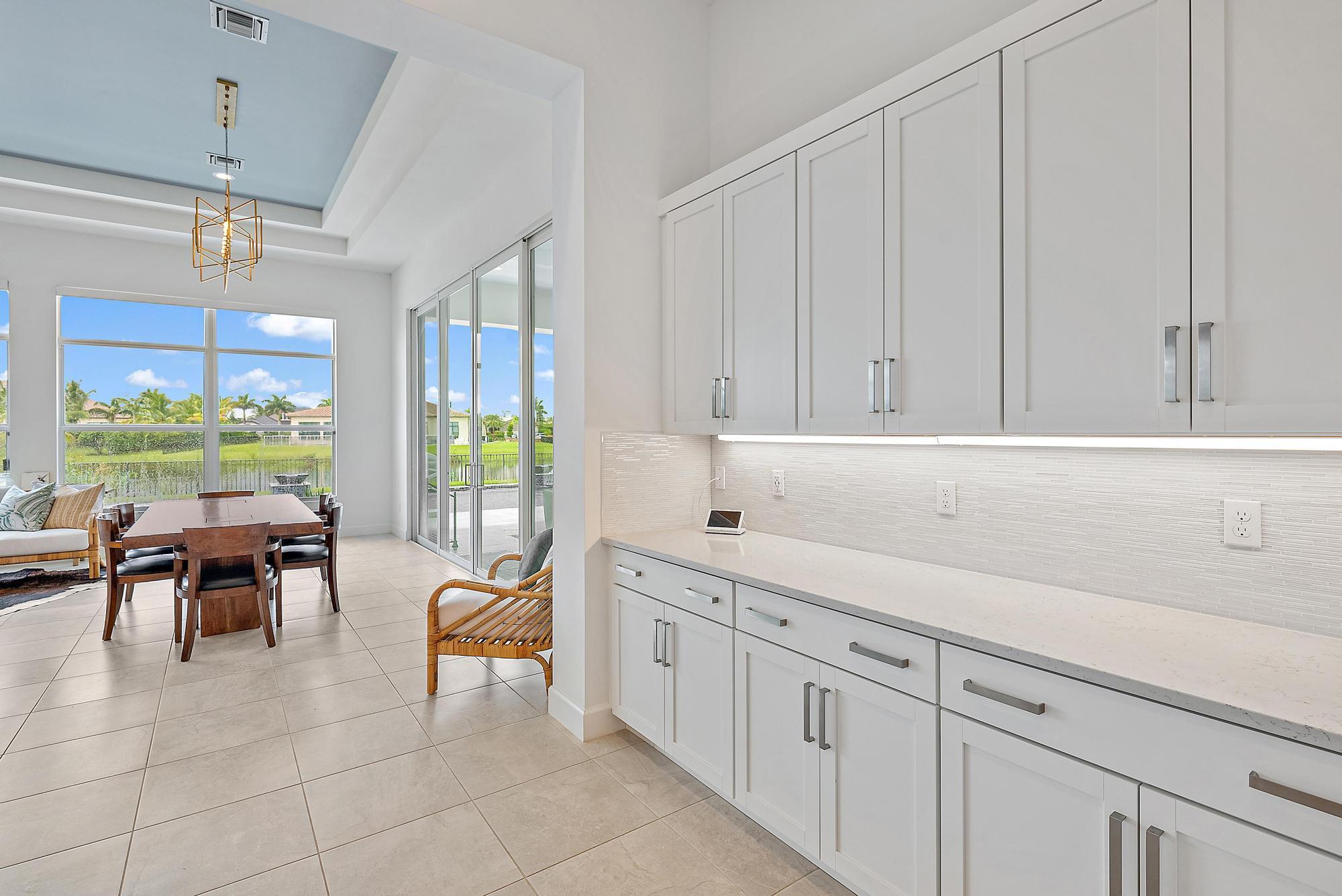 Welcome to this stunningly designed fully decorated and furnished one story residence in the coveted gated community of Prado in Jupiter, FL. Beautifully situated on a 1/2acre + site with long lake views and a natural preserve at the front of the home which makes for a nice buffer. This Manchester model comes with 4 spacious bedrooms accented by a true home office and a wonderful Club Room with sofa, card table, large mounted flatscreen, expansive counter with wet bar and beverage fridge
