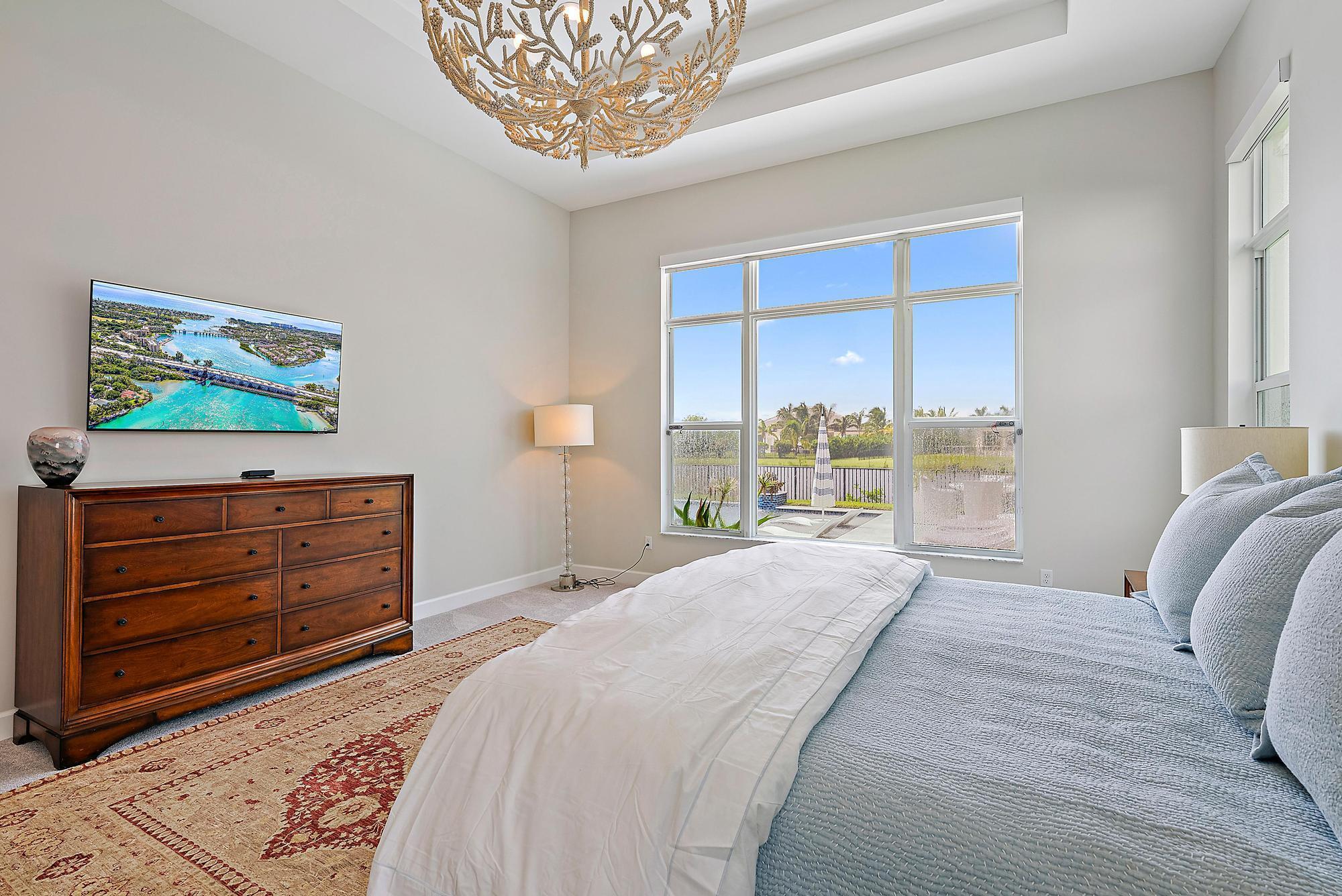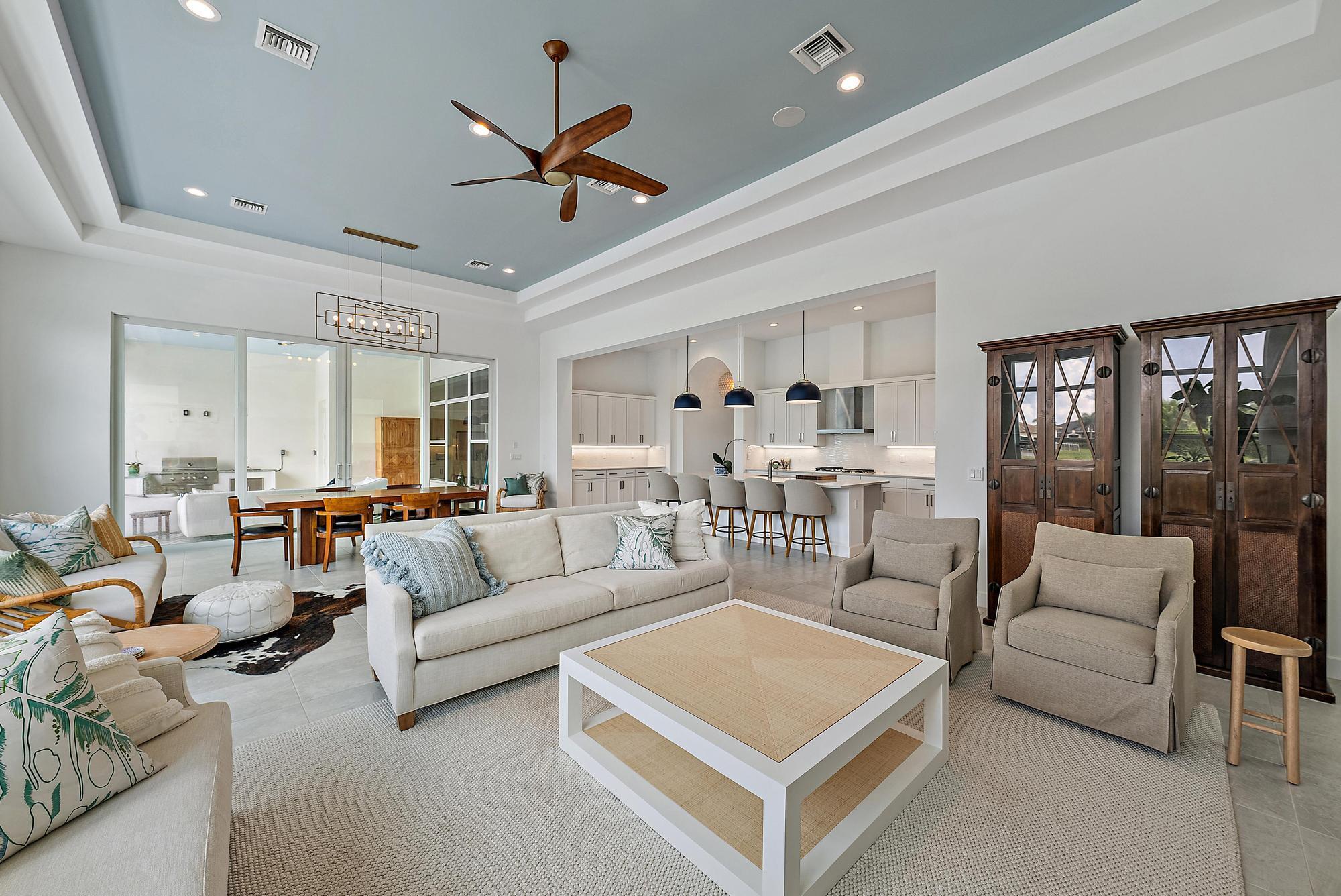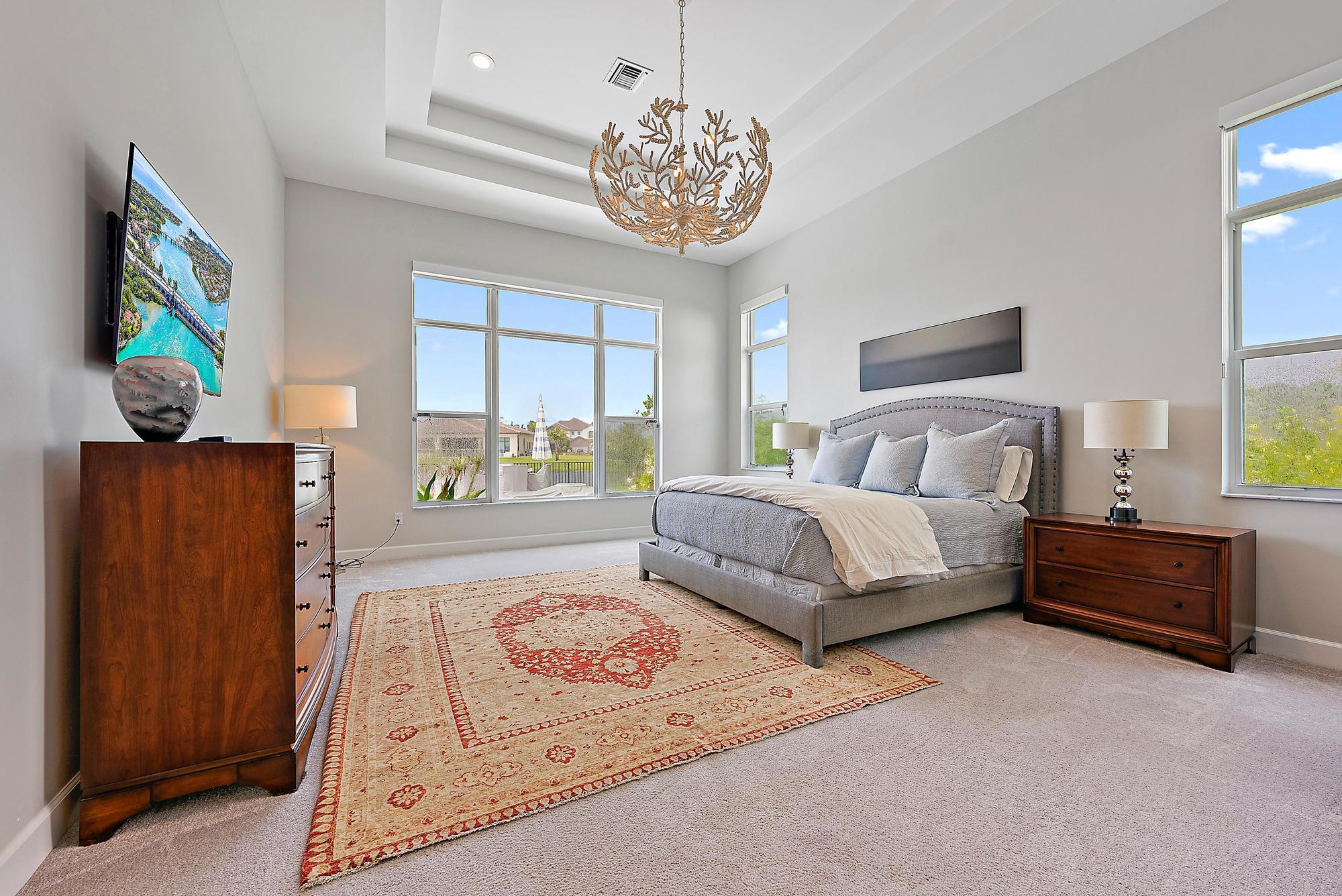 Welcome to this stunningly designed fully decorated and furnished one story residence in the coveted gated community of Prado in Jupiter, FL. Beautifully situated on a 1/2acre + site with long lake views and a natural preserve at the front of the home which makes for a nice buffer. This Manchester model comes with 4 spacious bedrooms accented by a true home office and a wonderful Club Room with sofa, card table, large mounted flatscreen, expansive counter with wet bar and beverage fridge
