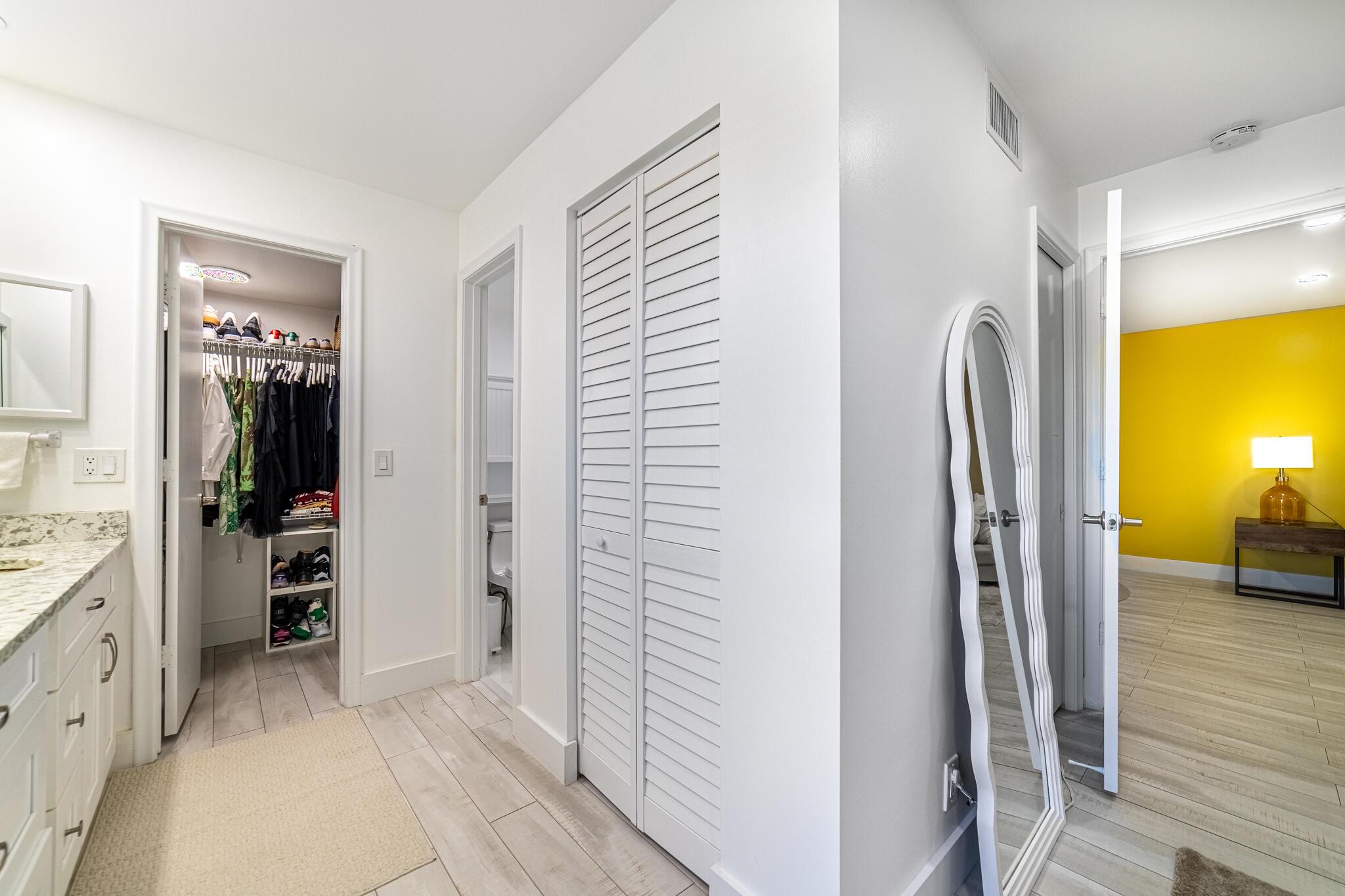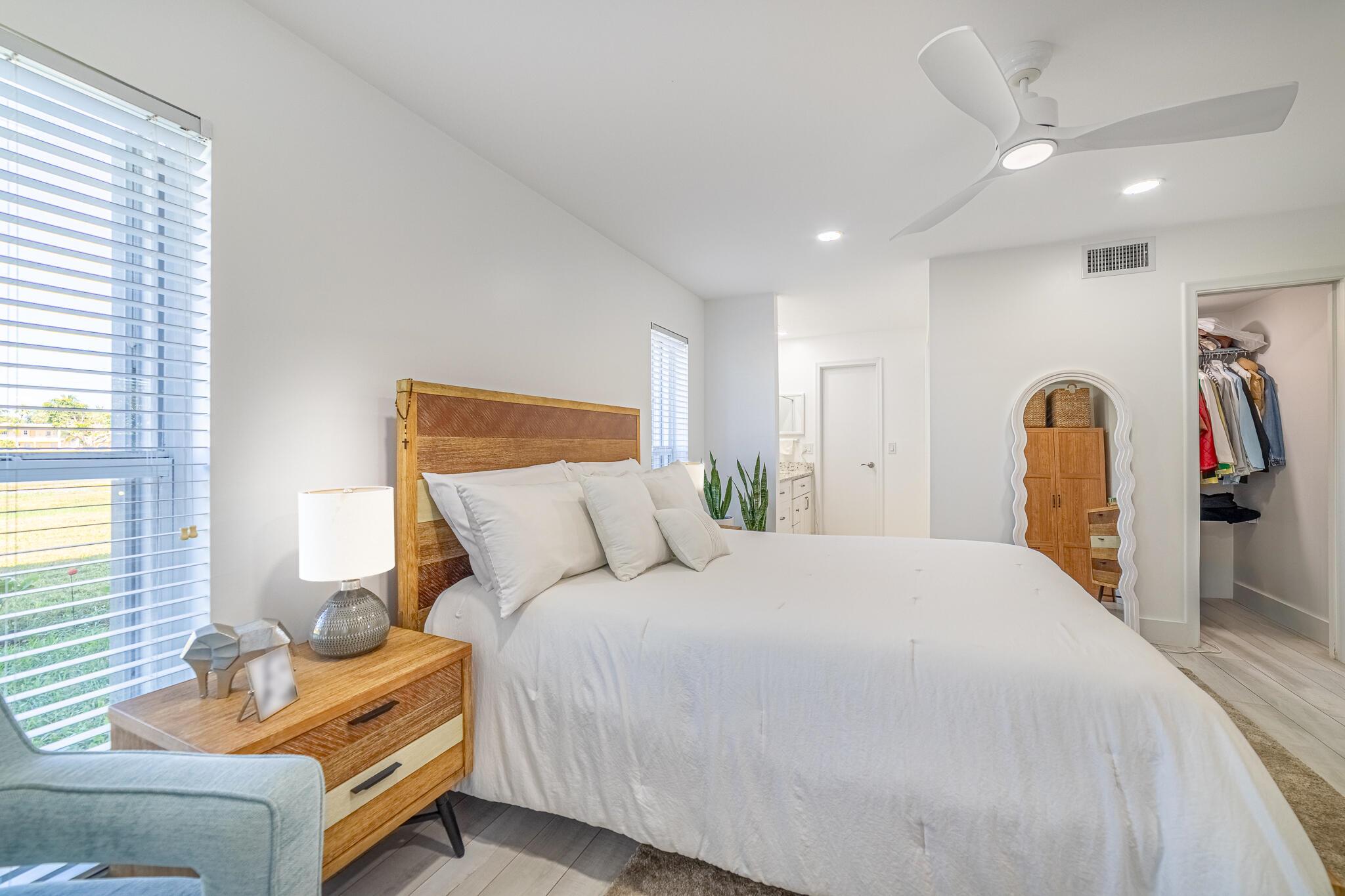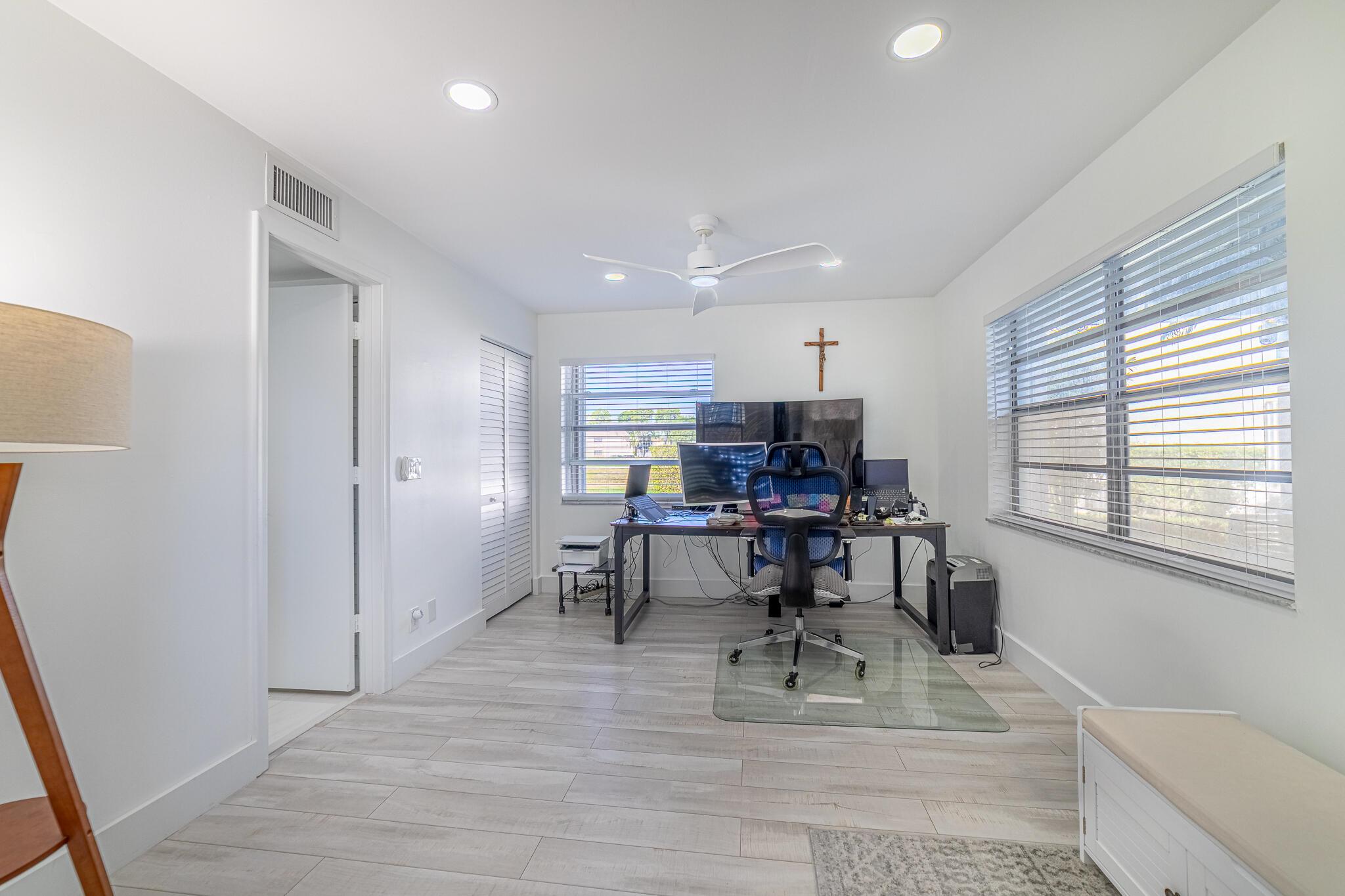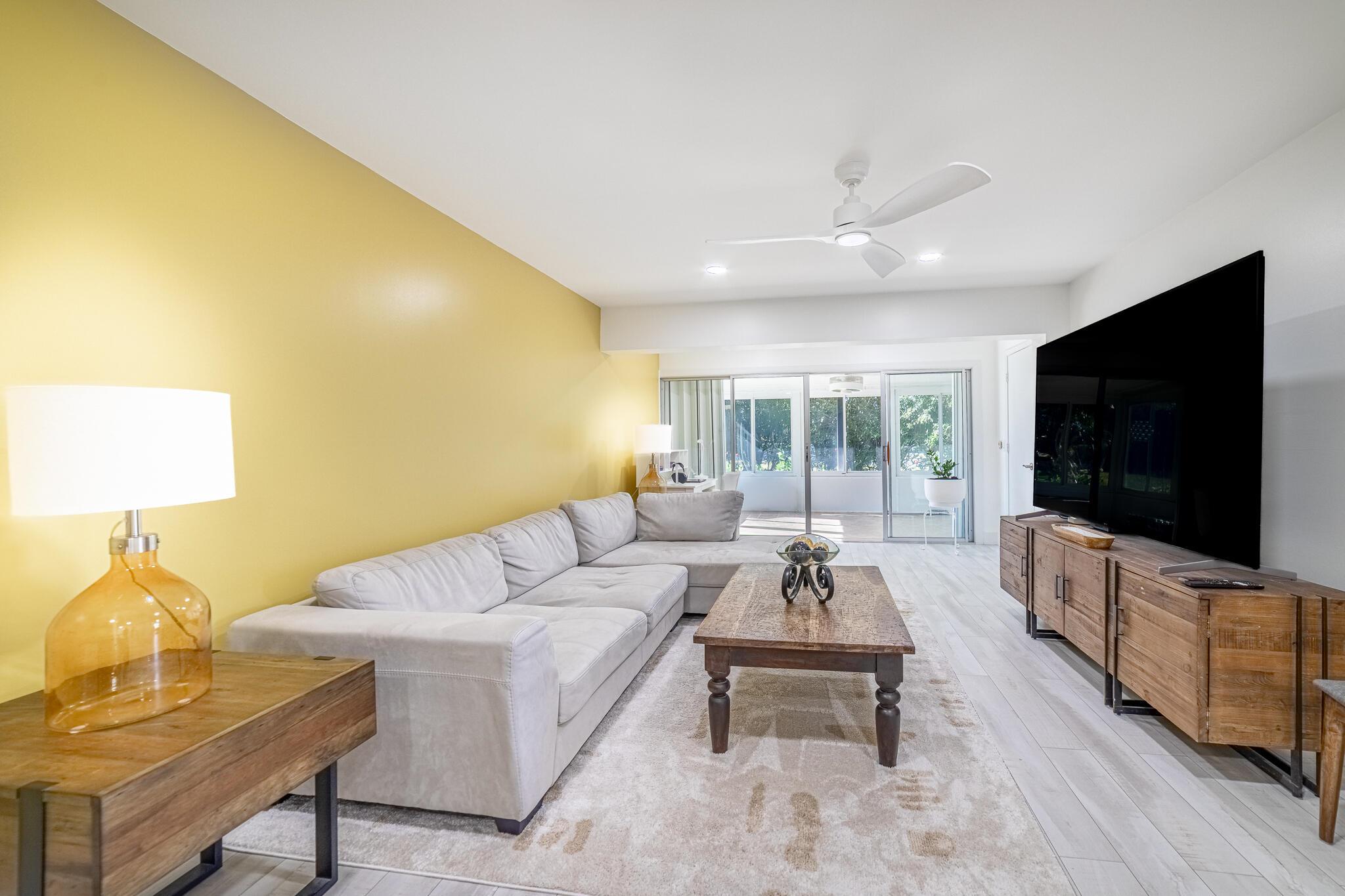 Beautifully Renovated 2 Bedroom 2 Full Bath 1st Floor Corner Condo in the 55+ community of Pines of Delray West in Delray Beach. Features include Laminate Flooring - no carpet, New Full-Size Washer & Dryer inside, Renovated Bathrooms, Private view from Screened & Windowed Patio with no neighbors behind you. BBQ from side open Patio area. The corner location with additional windows makes it a bright unit. Parking spot is right in front of the entrance. Amenities include: Clubhouse, Heated Pool &Spa, Fitness Room, Pickleball, Tennis, and planned activities. Close to the Beach, Delray Medical Center, Restaurants, trendy Atlantic Ave, Costco & I-95.