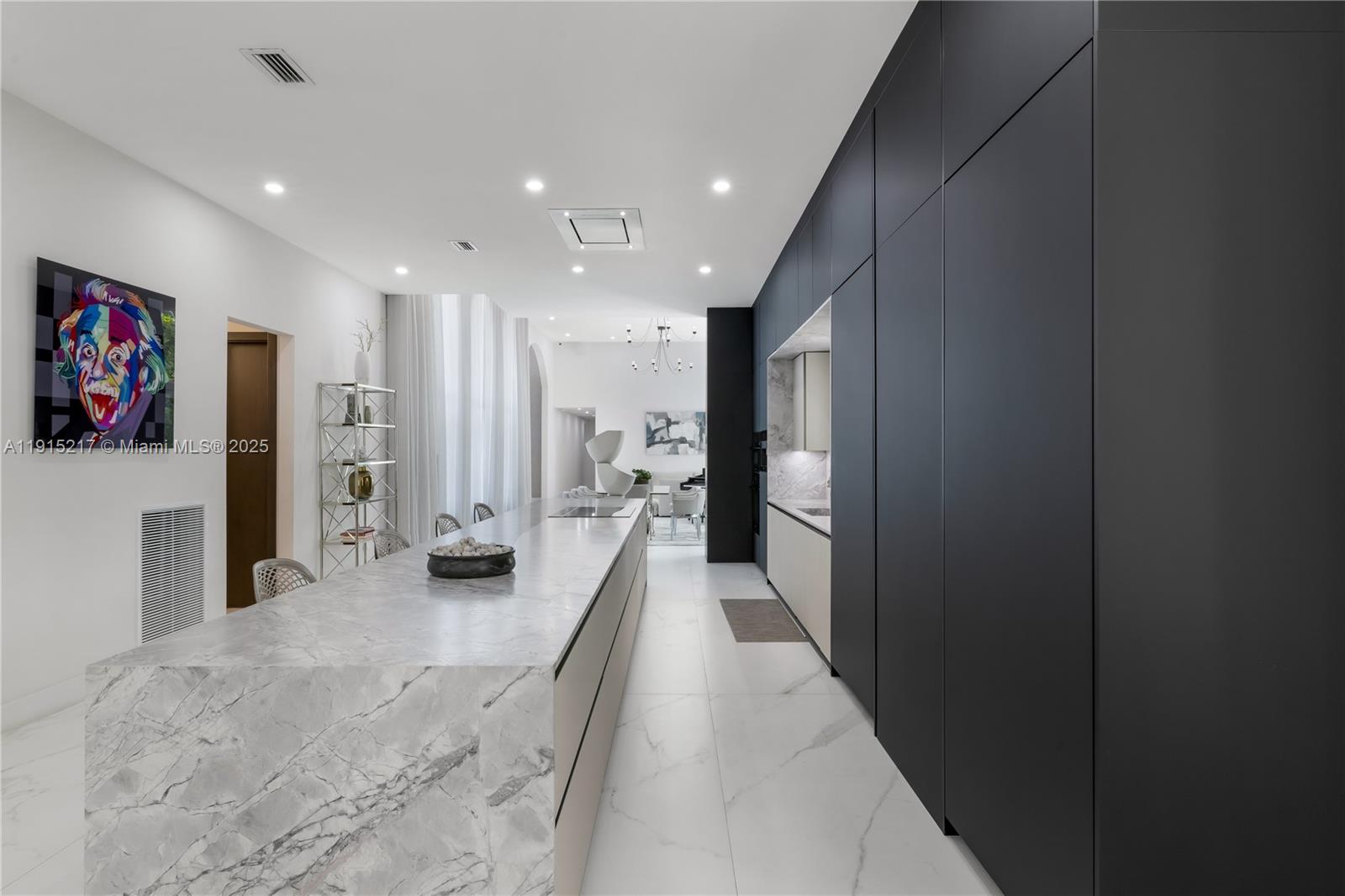 Short distance to Gulliver, Beth Am and Metro Rail. Set behind gates on a peaceful cul-de-sac in North Pinecrest, this refined single-story estate presents a rare opportunity to own a private compound steps from the newly completed Gary Matzner Park. On 1.1 acres of mature, manicured grounds, the property offers privacy, scale, & timeless appeal. The residence encompasses 6,318 square feet of living space with 6 bedrooms & 5-and-a-half baths, designed with an emphasis on flow, light, & understated luxury. Firenze Carrara marble floors extend throughout & new wood floors in bedrooms/closets are complemented by new impact glass that frames tranquil garden views & fills the interiors with natural light. The kitchen is architectural & functional, with Veneta Cucine Italian cabinetry, a sculptural leather-textured marble island, & Miele professional-grade appliances—ideal for intimate dining or sophisticated entertaining. The primary suite is conceived as a serene retreat, offering dual walk-in wardrobes & a spa-level bath finished in full-height, single-slab Italian stone. The Kohler DTV+ digital wellness system delivers steam, chromotherapy, integrated audio, & lighting. A 2 story guesthouse with new wood floors & a large bedroom on the ground floor & office on the 2nd floor provides exceptional comfort for extended family or long-term guests. A second driveway will fit a boat or large vehicle with ease. Outdoor living with a pool, new summer kitchen, & expansive garden await.