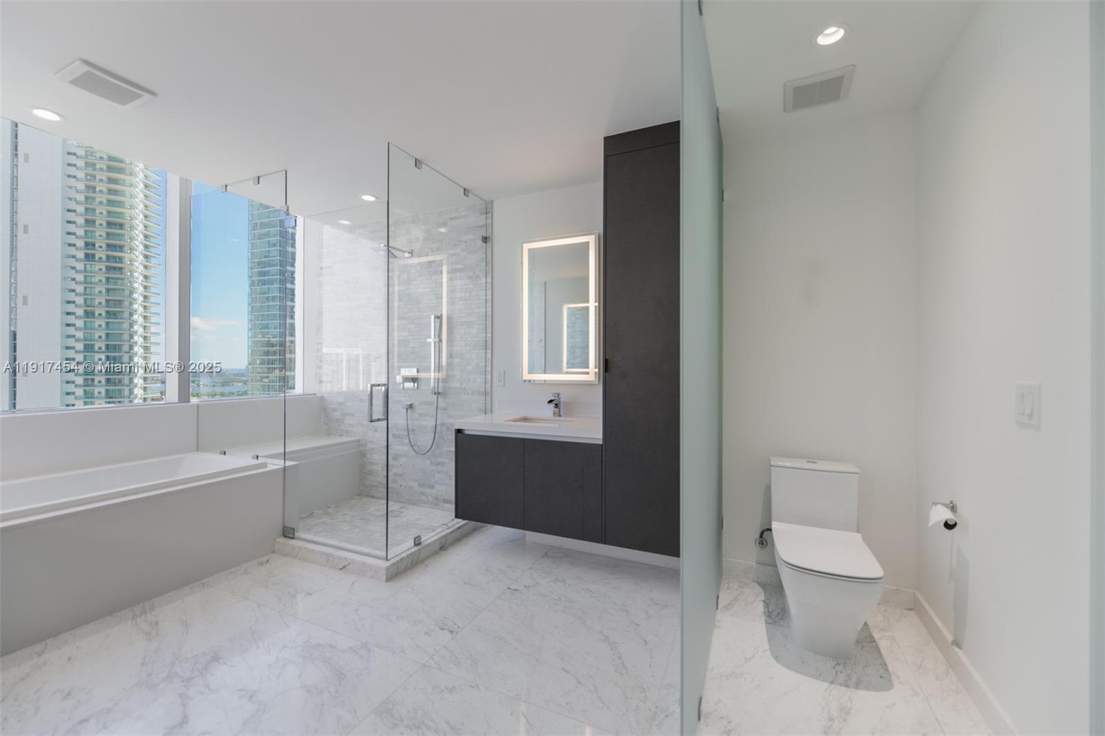 PARAMOUNT MIAMI WORLD CENTER! Unfurnished Luxurious Corner 3 Beds +Enclosed DEN / 4 Baths with Private Elevator Foyer. Freshly painted. 10 FT High Ceiling with Floor-to-Ceiling Windows. Nominated the Most Amenities in for Residential Building. In the Heart of Miami Downtown! Spectacular NE Views of the City. European Kitchen w/ top of the line appliances Bosch & Sub Zero. Built in Closets. Den is converted to a 4th Bedroom (can be opened). 2 parking spaces: 1 assigned and 1 valet. 5 resort-style pools, full service spa, huge fitness center, boxing studio, basketball court, tennis courts, yoga, theater, lounges, BBQ, café, business center, resident lounge, recording studio, dog park and much more. Minutes from Wynwood, Brickell, Midtown, Design District, South Beach.